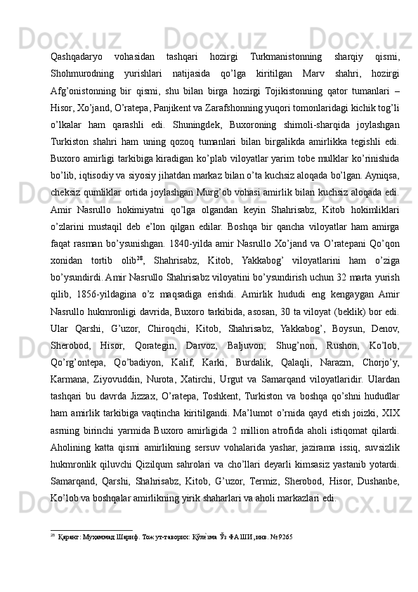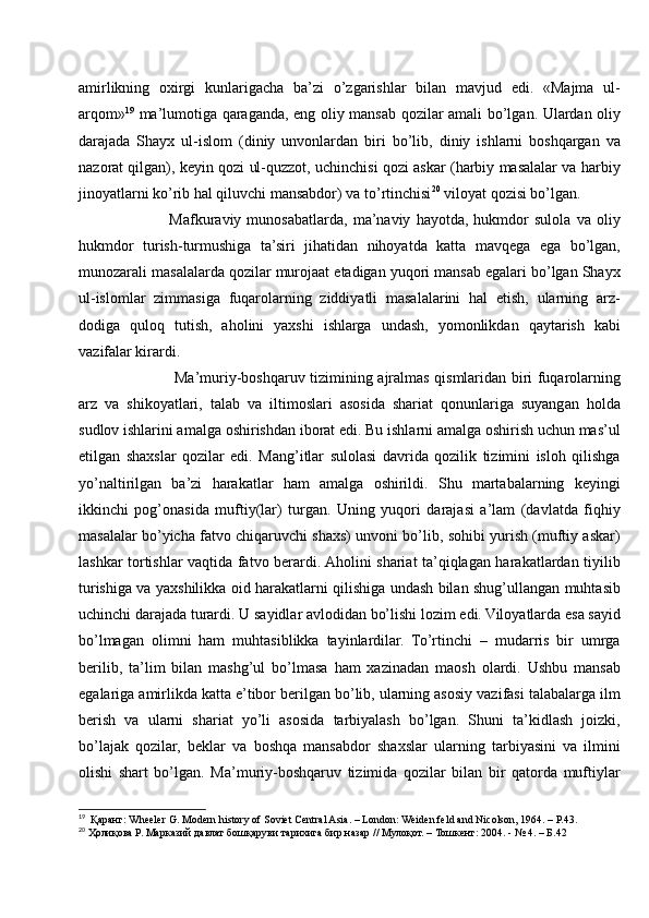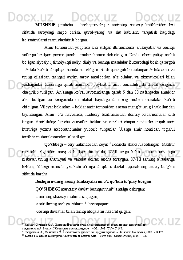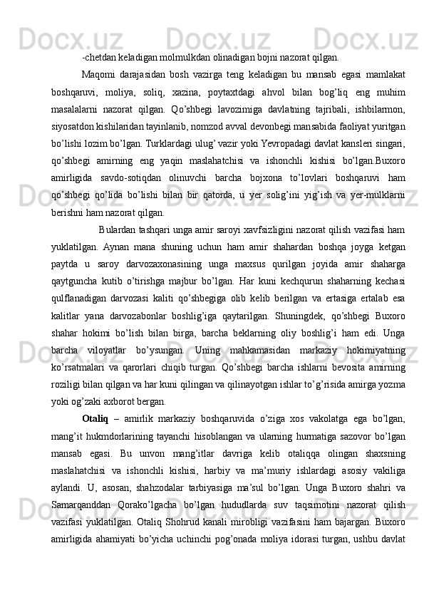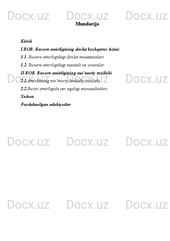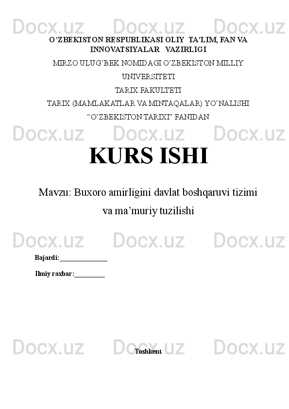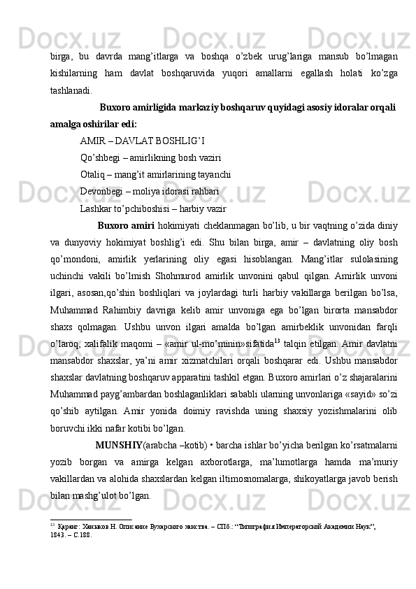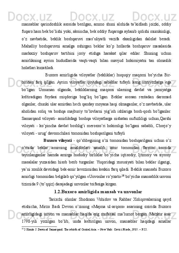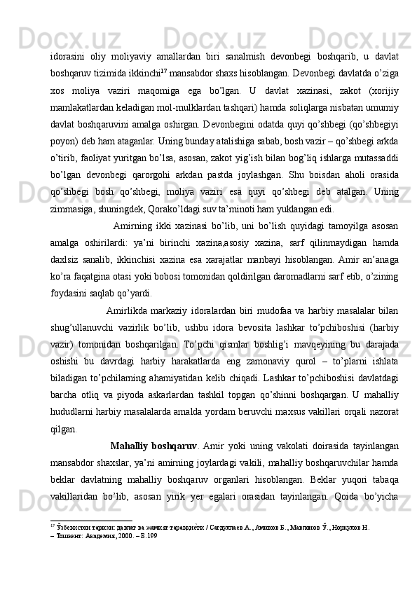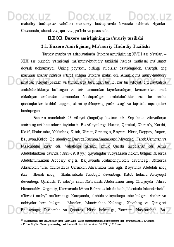 Buxoro amirligini davlat boshqaruvi tizimi va ma’muriy tuzilishi