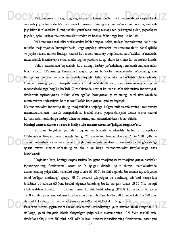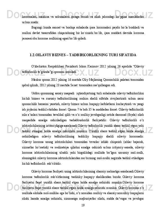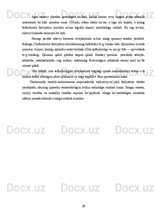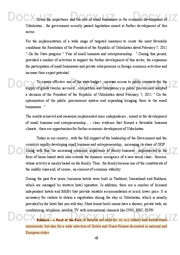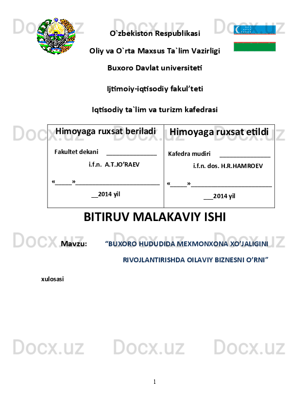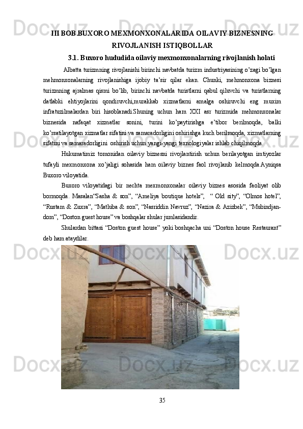 Buxoro hududida mexmonxona xo’jaligini rivojlantirishda oilaviy biznesni o’rni