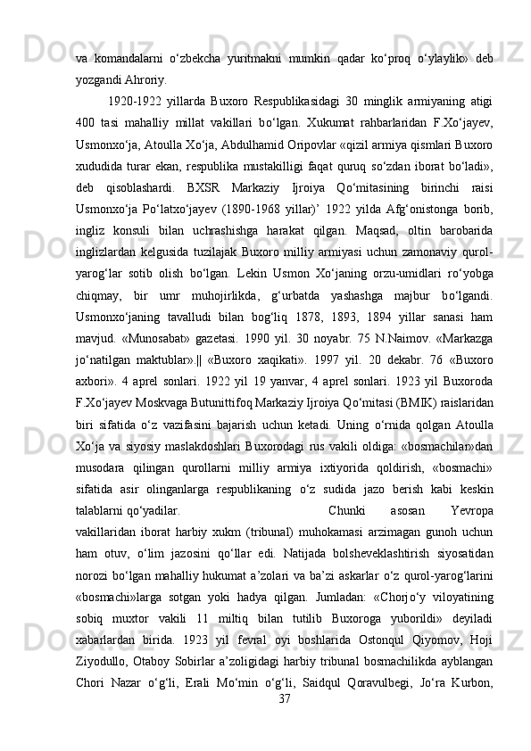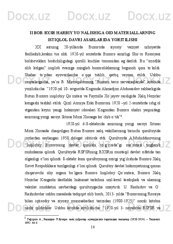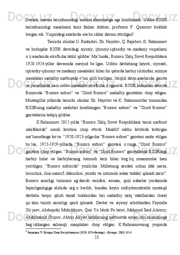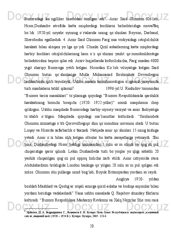 Buxoro Xalq Sovet Respublikasi haqida yangicha qarashlar
