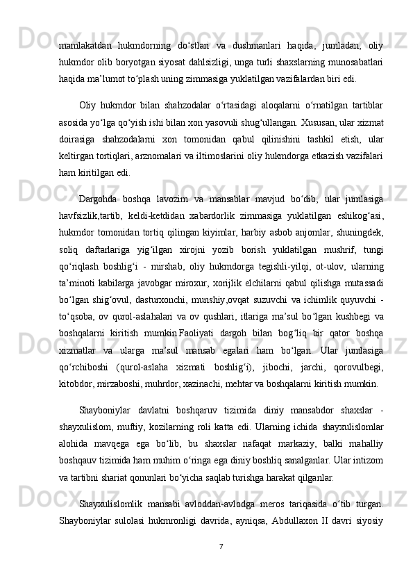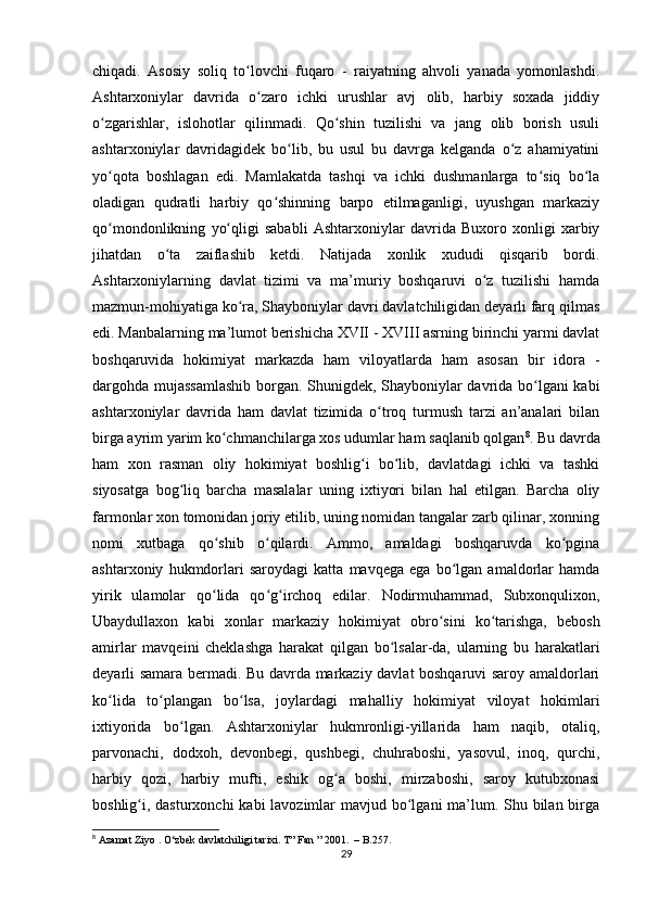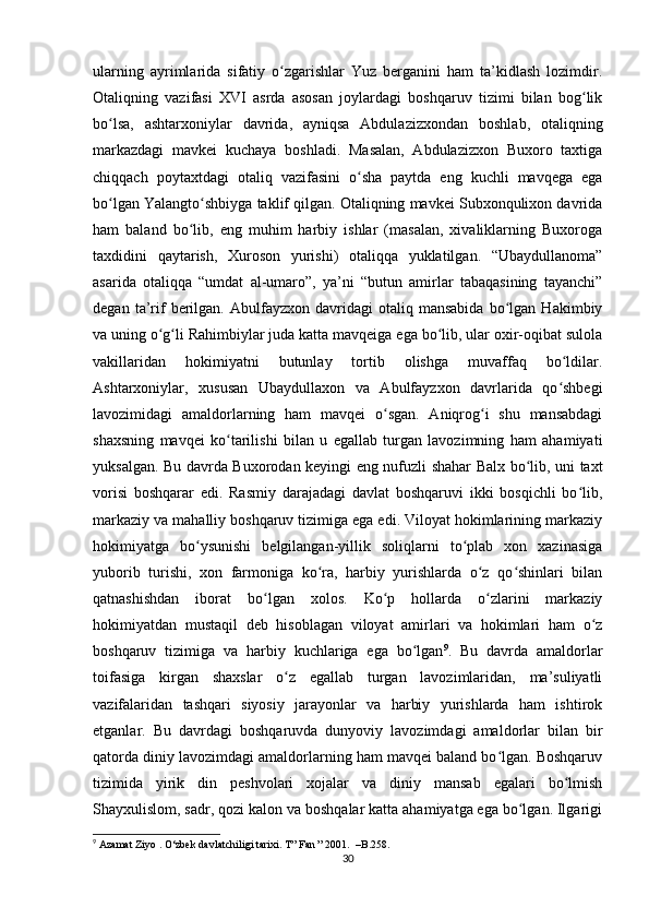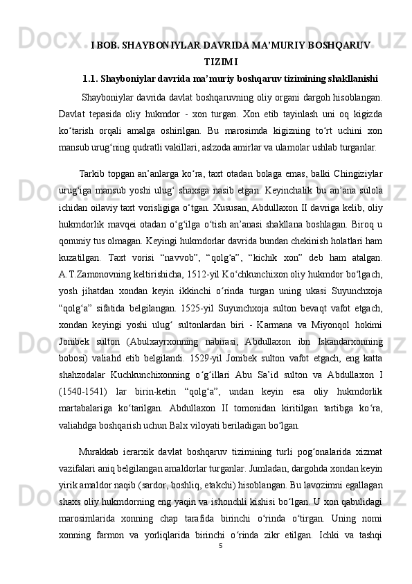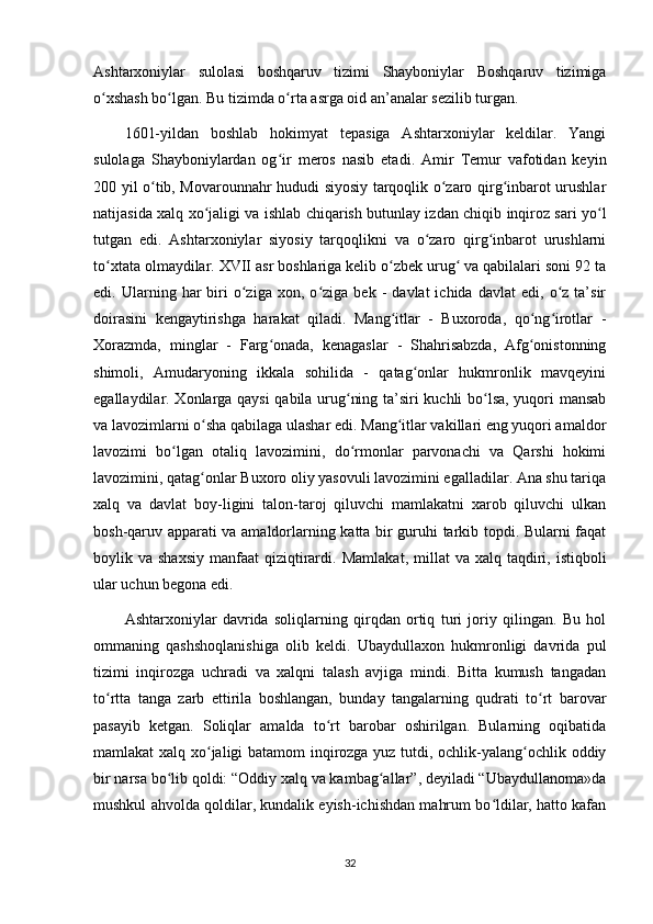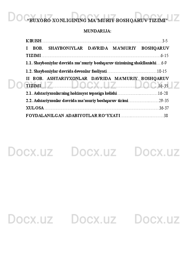 Buxoro xonligining mamuriy boshqaruv tizimi