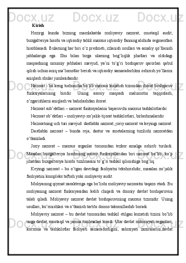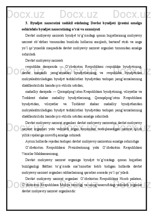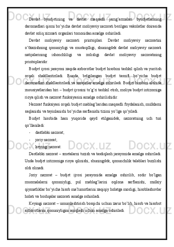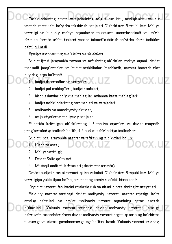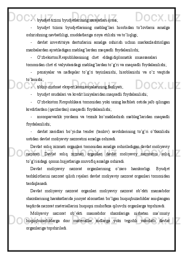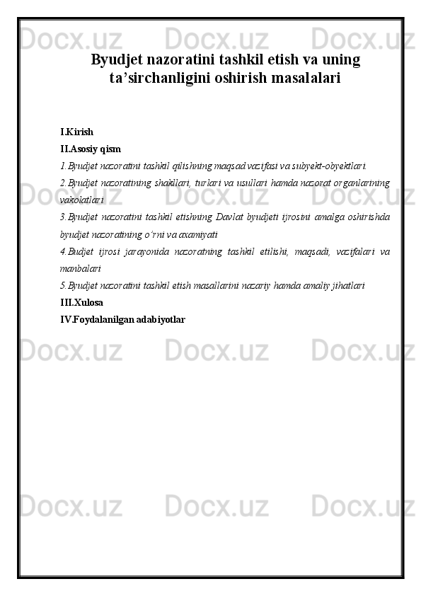 Byudjet nazoratini tashkil etish va uning ta'sirchanligini oshirish masalalari