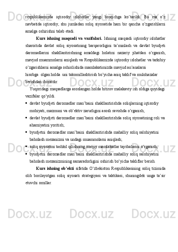 Byudjet-soliq siyosatining iqtisodiy o’sishga ta’siri