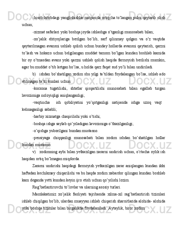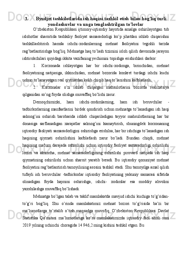 Byudjet tashkilotlarida ish haqi va unga tenglashtrilgan to’lovlar xisobi
