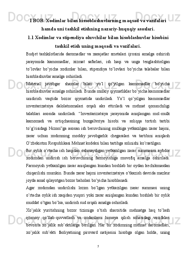 Byudjet tashkilotlarida xodimlar va stipendiya oluvchilar bilan hisoblashuvlar hisobi.