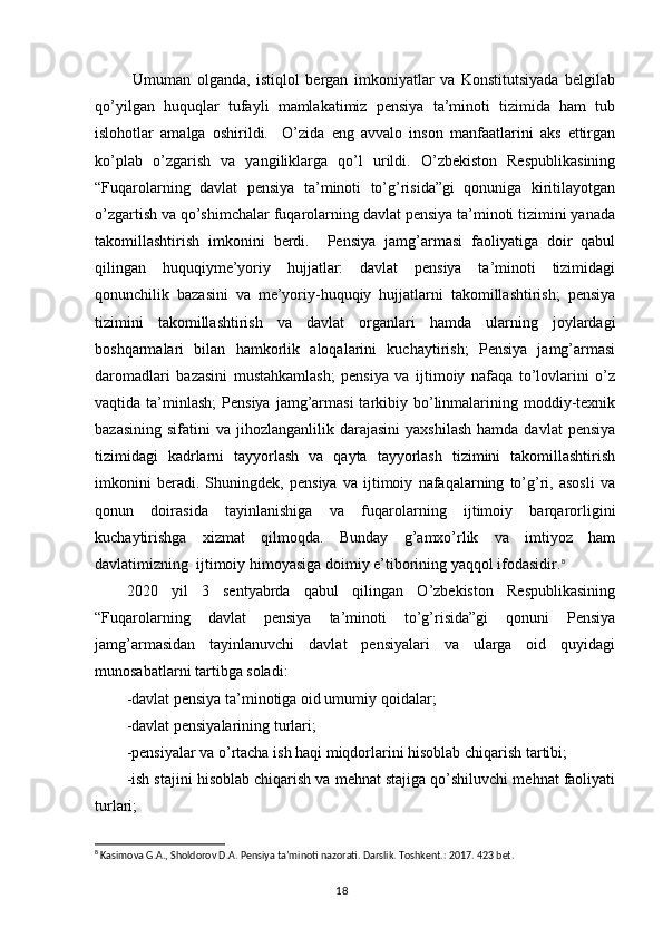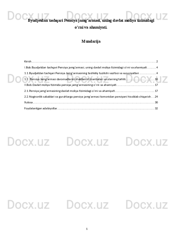 Byudjetdan tashqari Pensiya jamg’armasi, uning davlat moliya tizimidagi o’rni va ahamiyati.