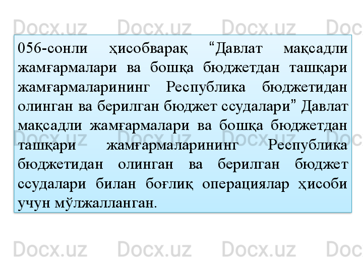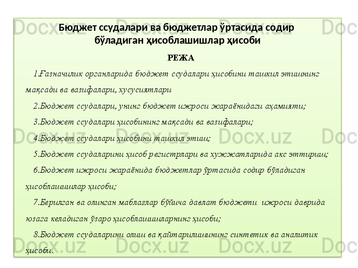 Бюджет ссудалари ва бюджетлар ўртасида содир бўладиган ҳисоблашишлар ҳисоби