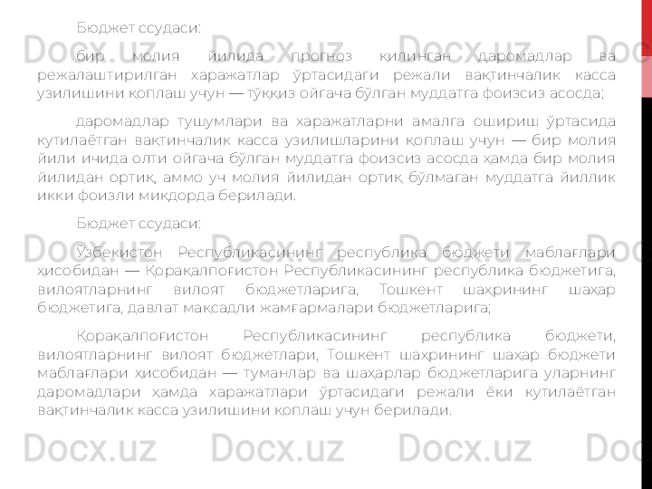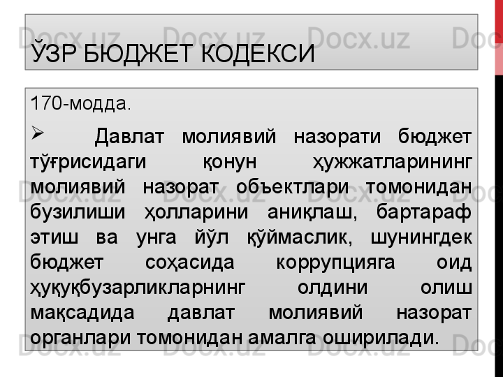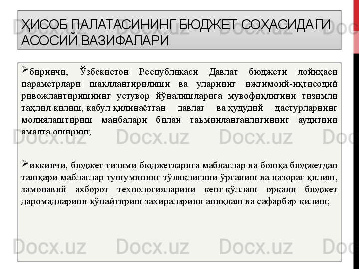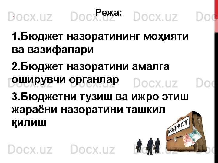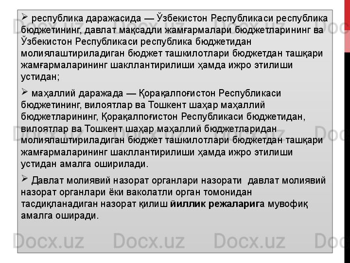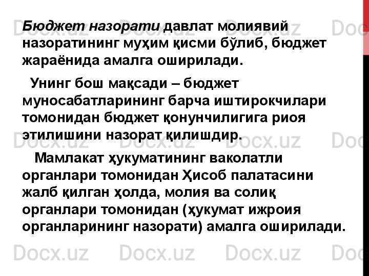 Бюджет тузиш ва ижро этиш жараёни назорати