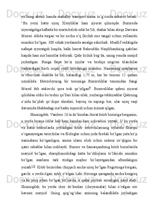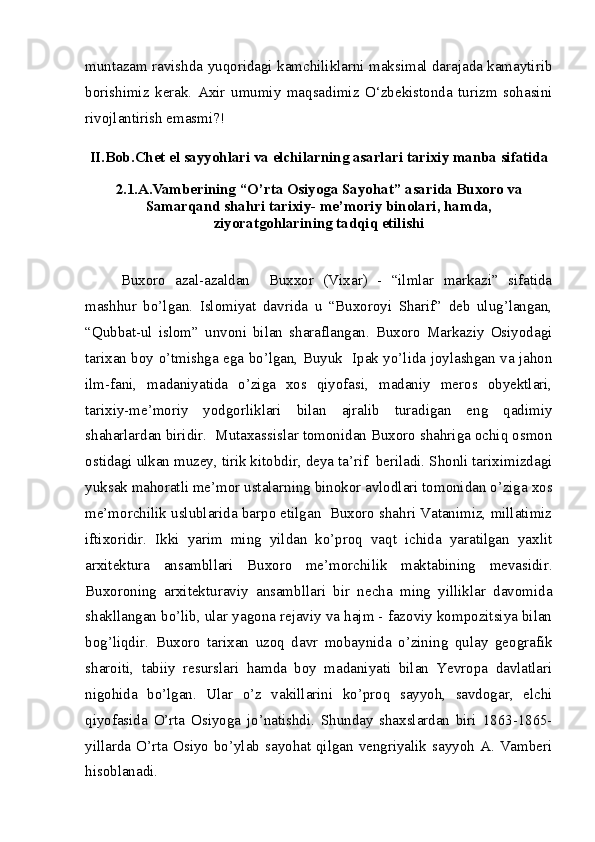 2.1.A.Vamberining “O’rta Osiyoga Sayohat” asarida Buxoro va