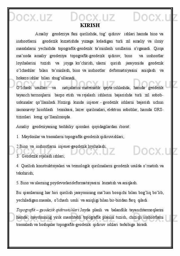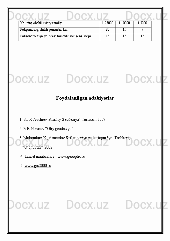 1. SH.K.Avchiev“Amaliy Geodeziya” Toshkent 2007