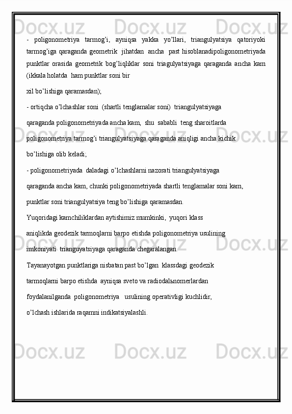 xalqasimon spiral ko’rinishdagi murakkabroq qayrilmalardan foydalaniladi. 2.2 Planli injiner geodezik tarmoqni aniqligini hisoblash