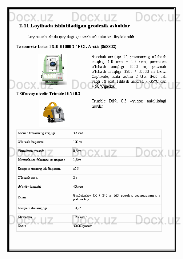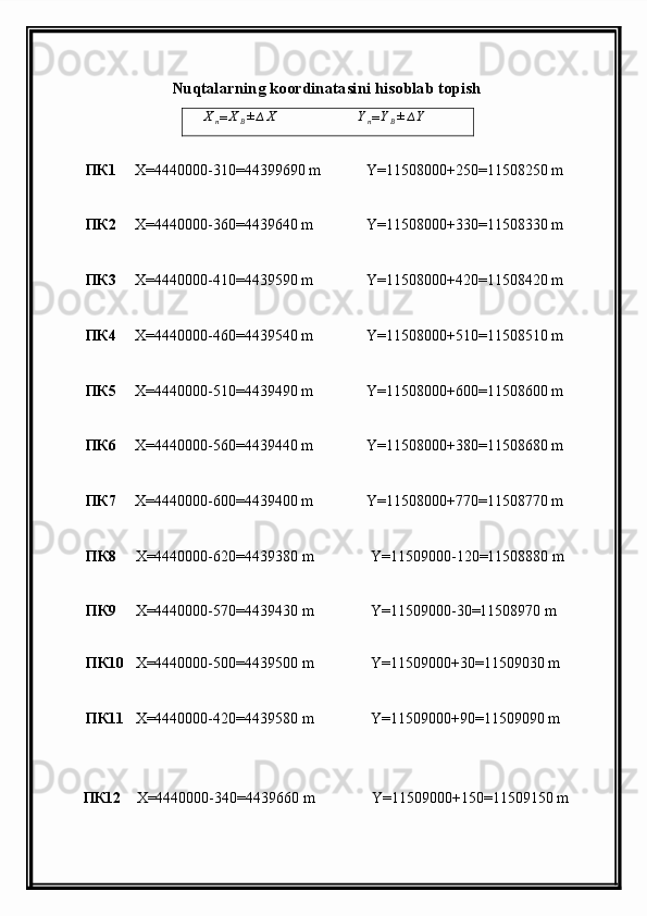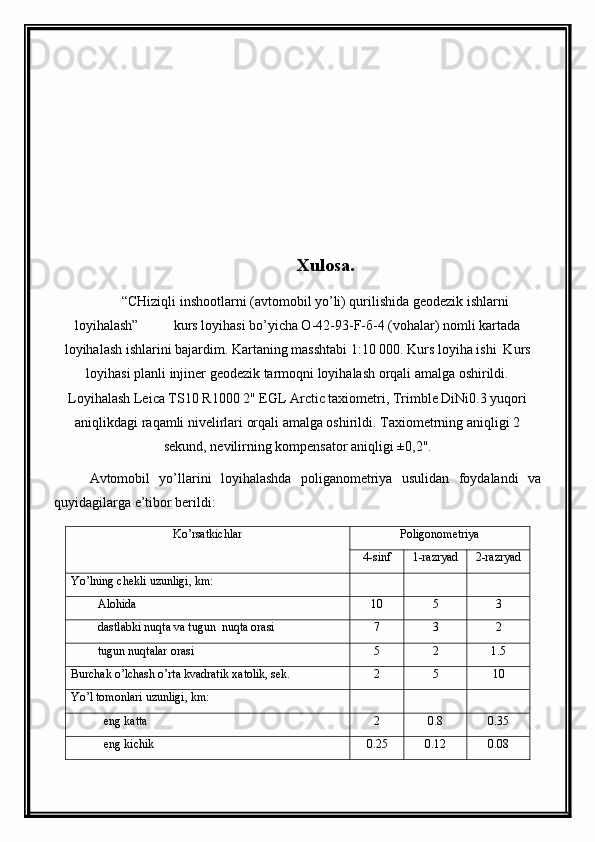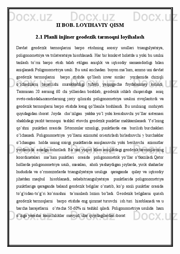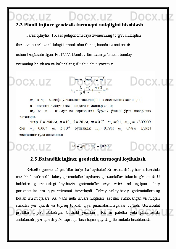 , balandlik o’lchashlar esa 1-2 sm aniqlikda bajarilgan bo’lib,