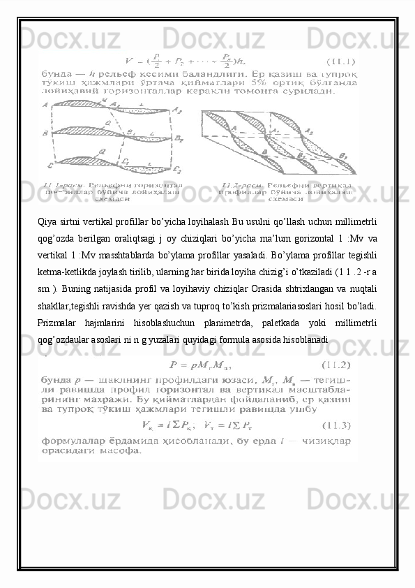 r- shartli tenglamalar soni. Qiya sirtni vertikal profillar bo’yicha loyihalash Bu usulni qo’llash uchun millimetrli