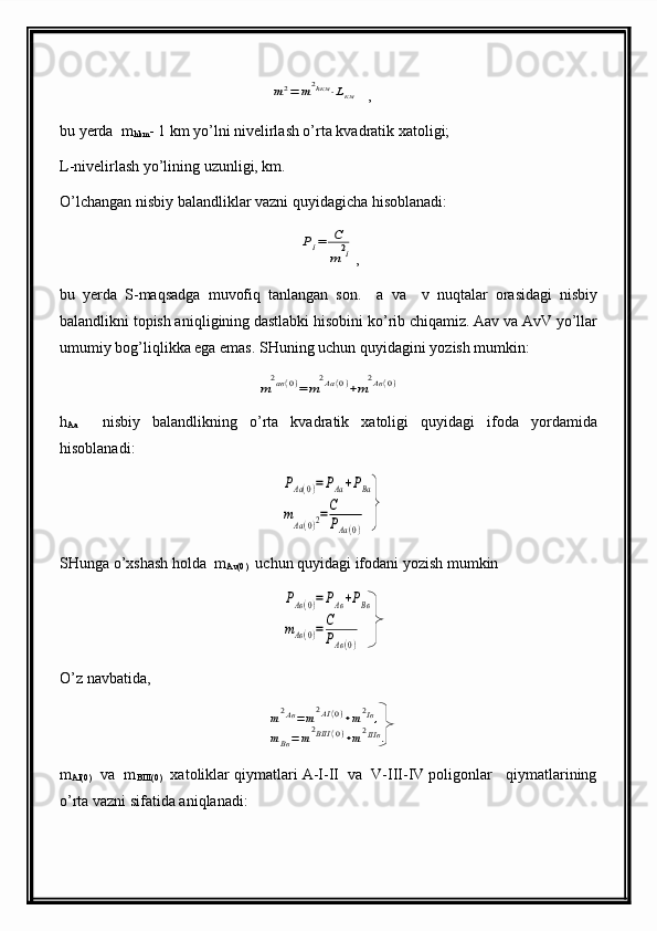 echish orqali aniqlanadi. Bundan: Yo’lning chekli nisbiy xatoligi 1:25000 1:10000 1:5000