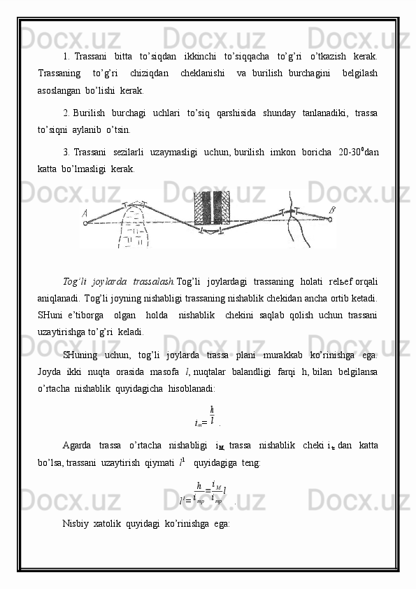 aniqlanadi. Tog’li joyning nishabligi trassaning nishablik chekidan ancha ortib ketadi.