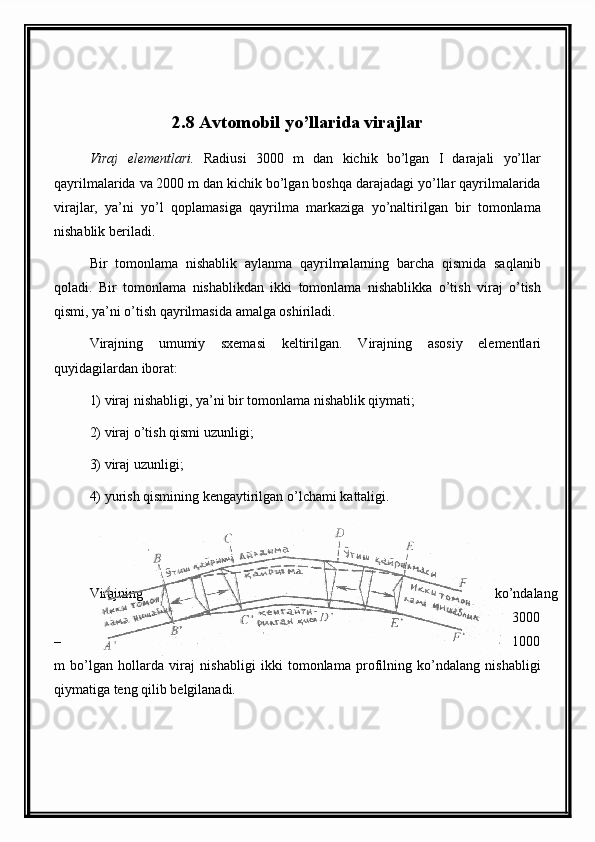 Virajning   ko’ndalang   profili   qayrilmaning   radiusiga   bog’liq   bo’ladi.   Qayrilma   radiusi