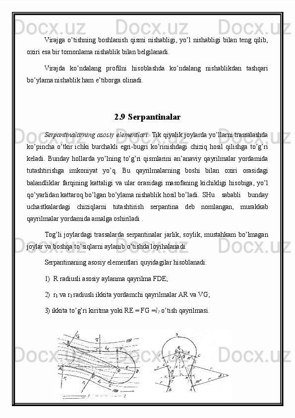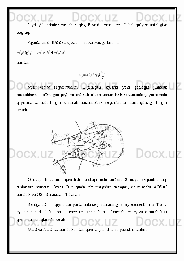 qiymatiga teng qilib belgilanadi. Agarda   serpantinaning   yordamchi   radiuslari   va   to’g’ri   kiritmalari   teng   bo’lsa,