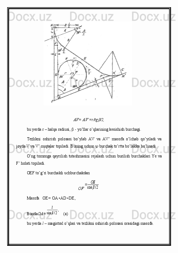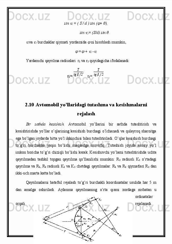 qayrilma radiusi R, yordamchi qayrilmalar radiuslari r, hamda o’tish qayrilma qiymati