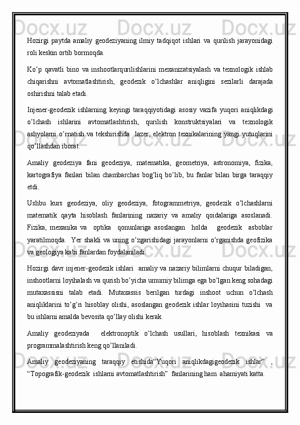 dalnomerlari,lazer   asboblari   geodeziya   fanining   h ar   tomonlama   o’sish i ga   yordam