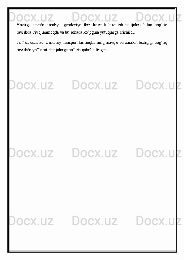 1.1 Avtomobil yo’llari to’g’risida umumiy ma’lumotlar.