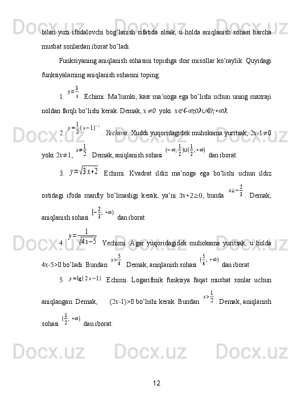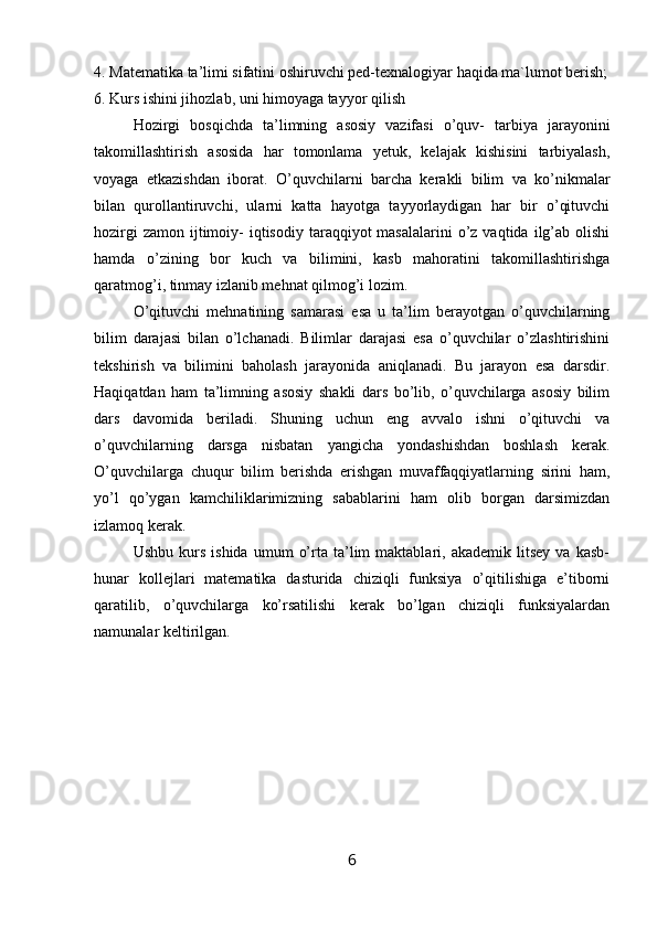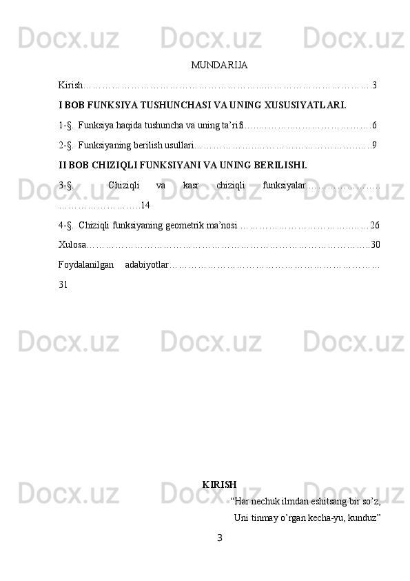 1-§. Funksiya hаqidа tushunchа vа uning tа’rifi…..………..…………………….6