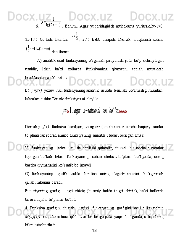 2-§. Funksiyaning bеrilish usullаri………………..…………………………..…..9