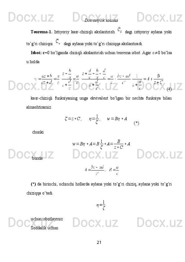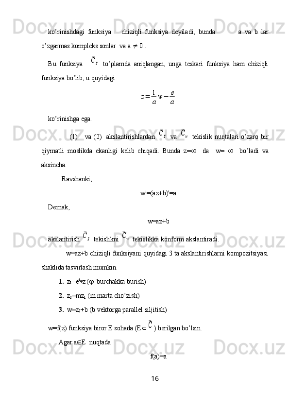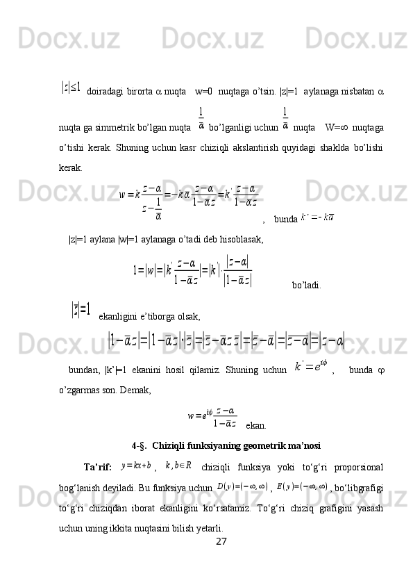 3-§. Chiziqli va kasr chiziqli funksiyalar.…………………..……………………..14