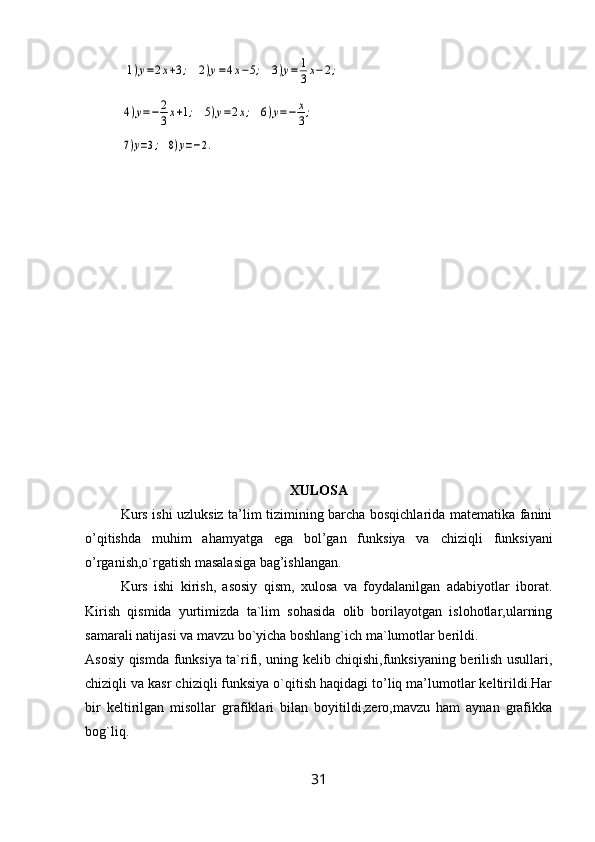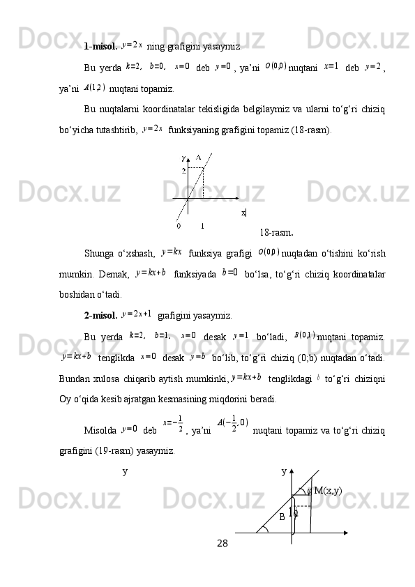 4-§. Chiziqli funksiyaning geometrik ma’nosi ……………………………..……26