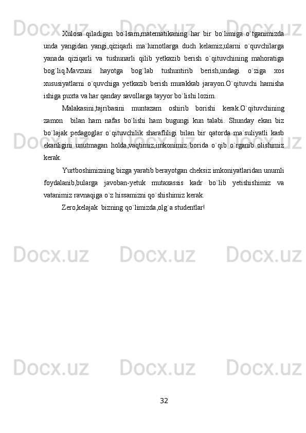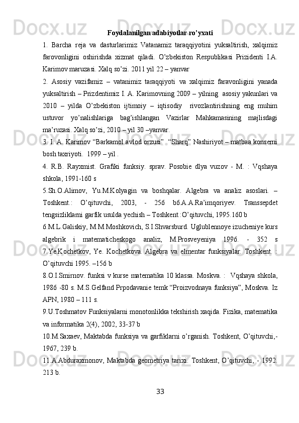 Foydalanilgan adabiyotlar…………………………………………………………31
