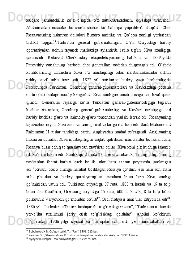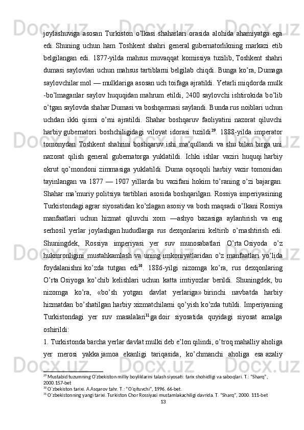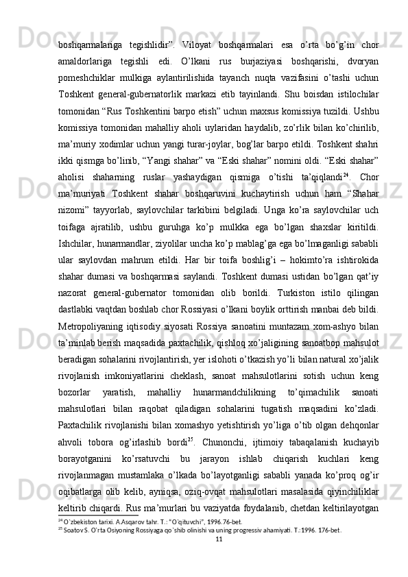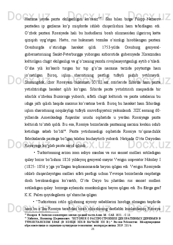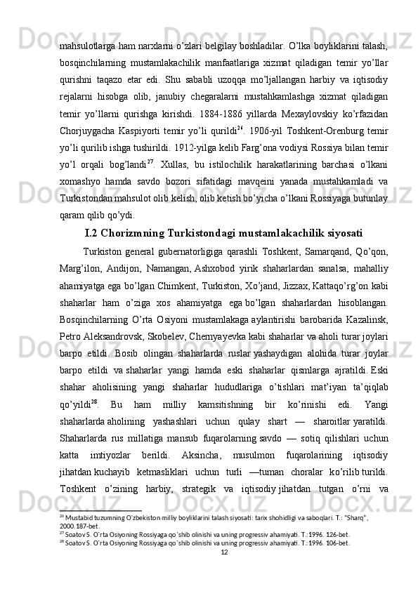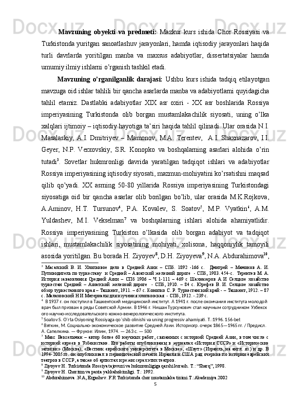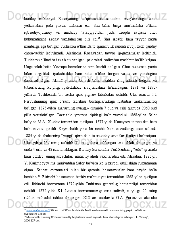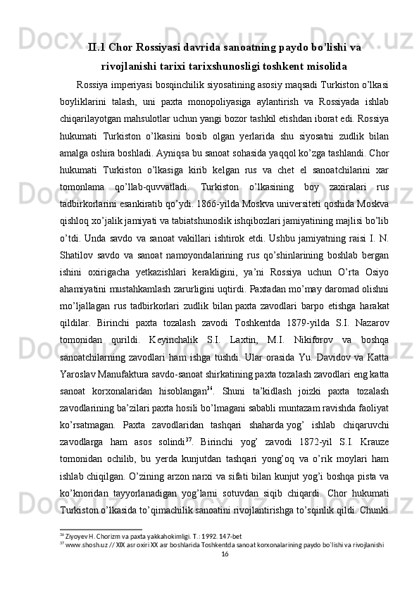 Chor Rossiyasi davrida Turkistonda sanoatlashuv tarixi tahlili tarixshunosligi