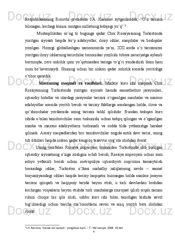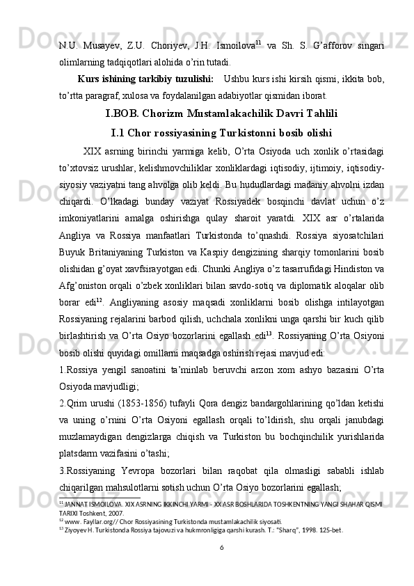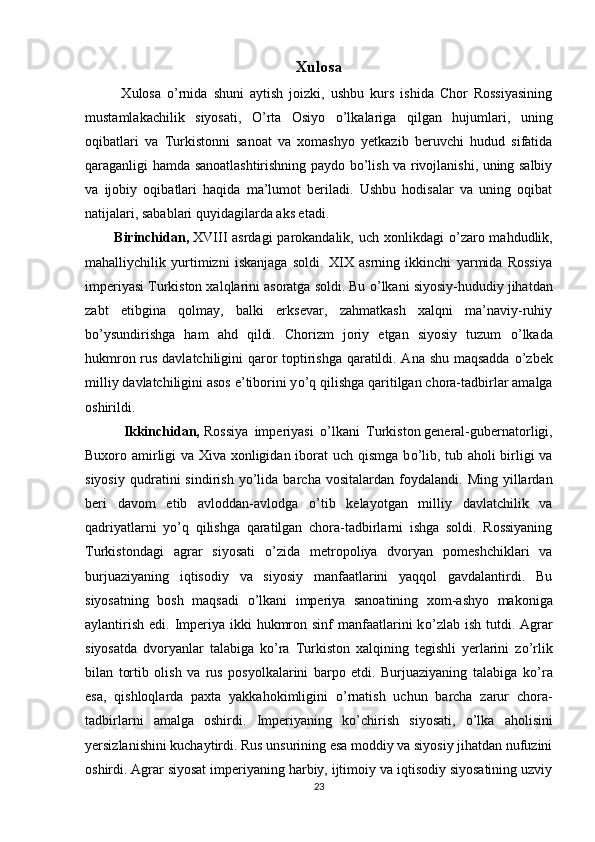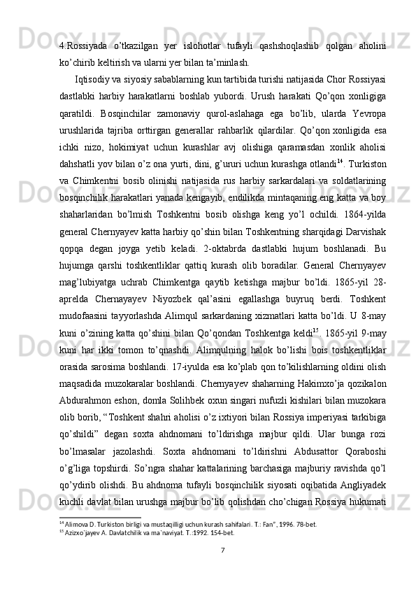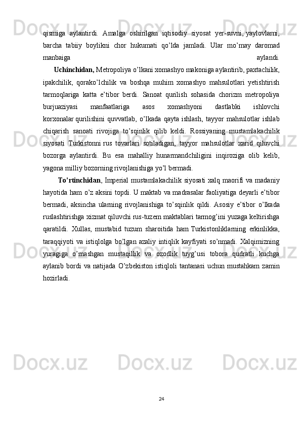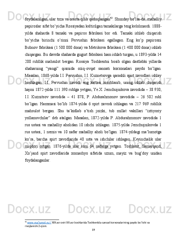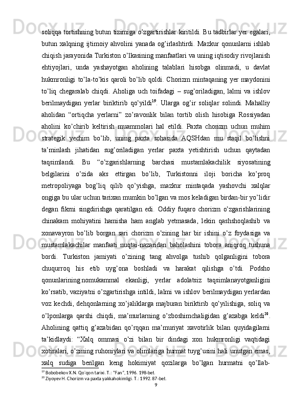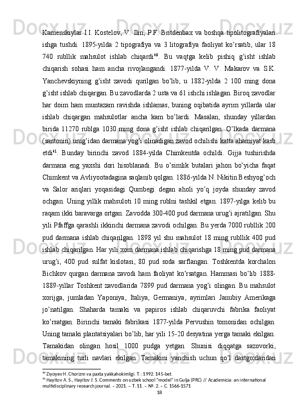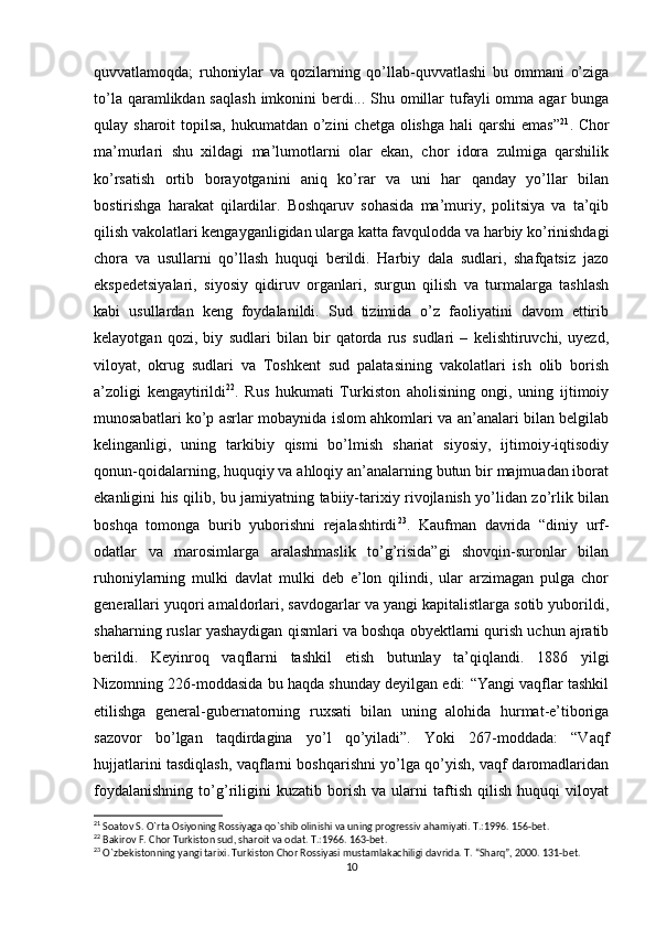 Chor Rossiyasi davrida Turkistonda sanoatlashuv tarixi tahlili tarixshunosligi