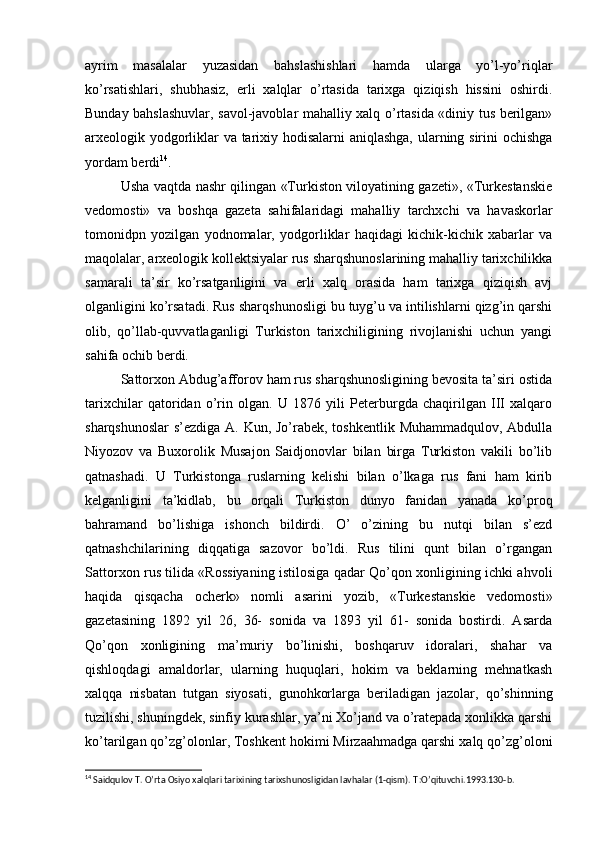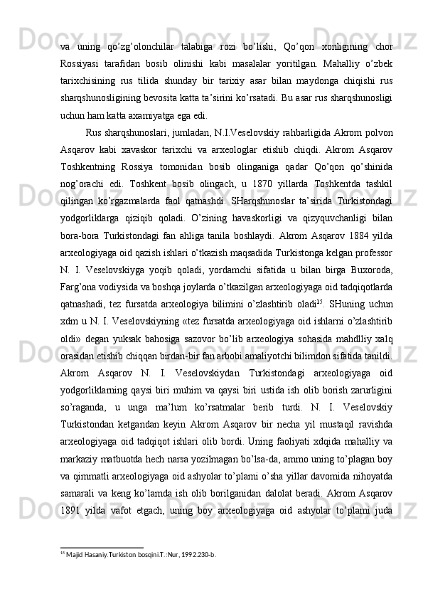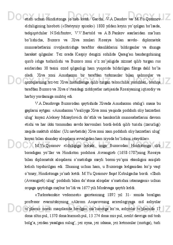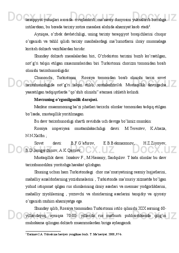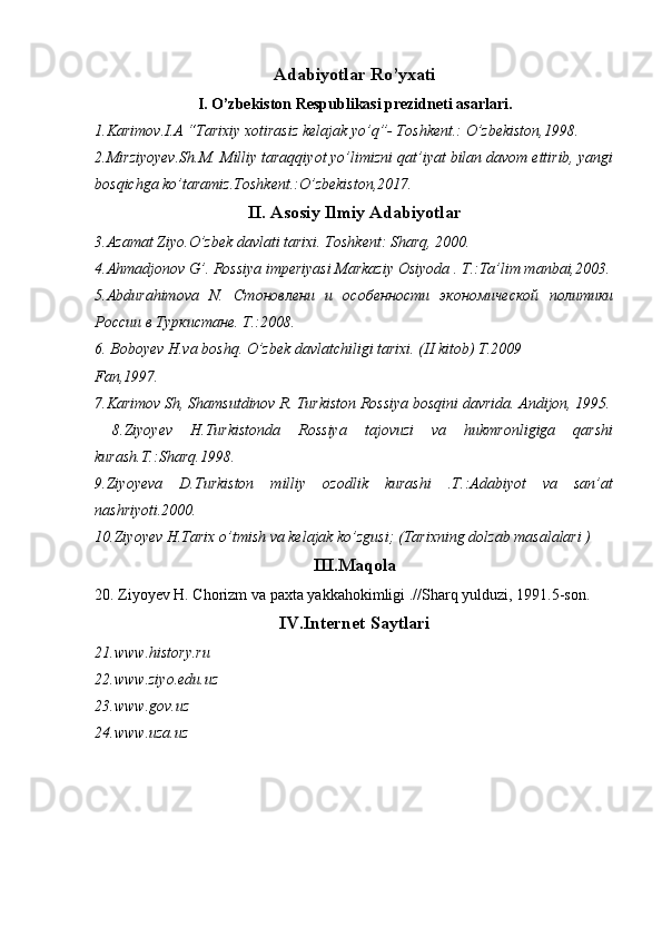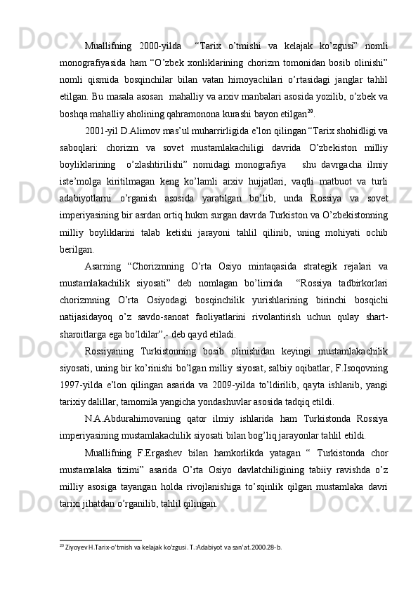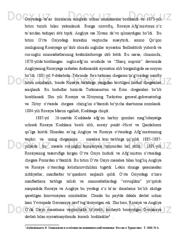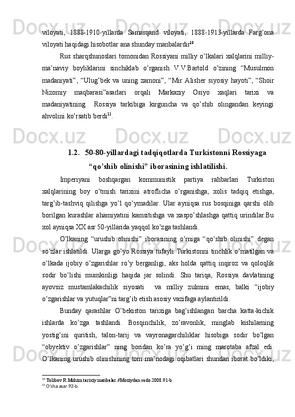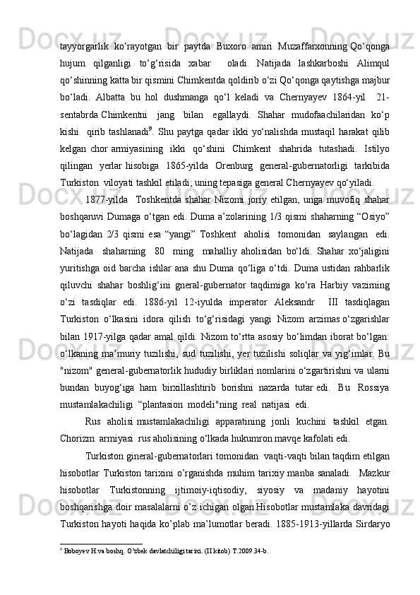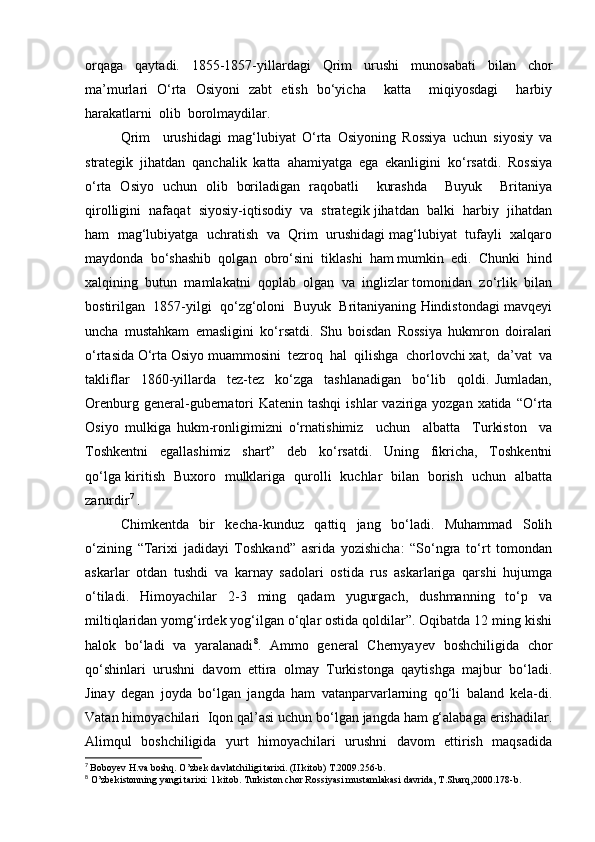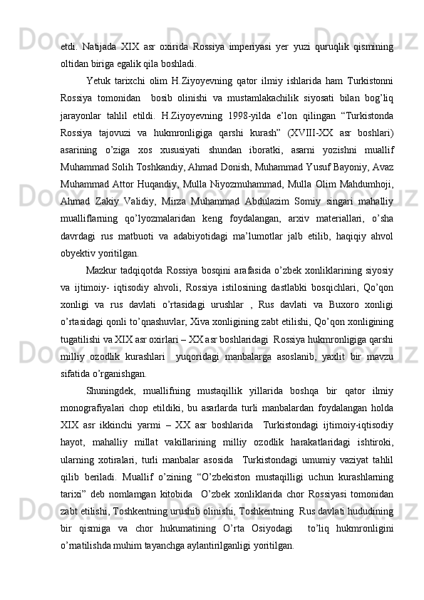 Chor Rossiyasining O'rta Osiyo xonliklarini bosib olinishiga oid tadqiqotlar