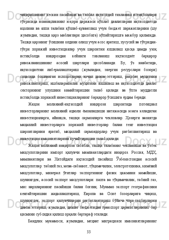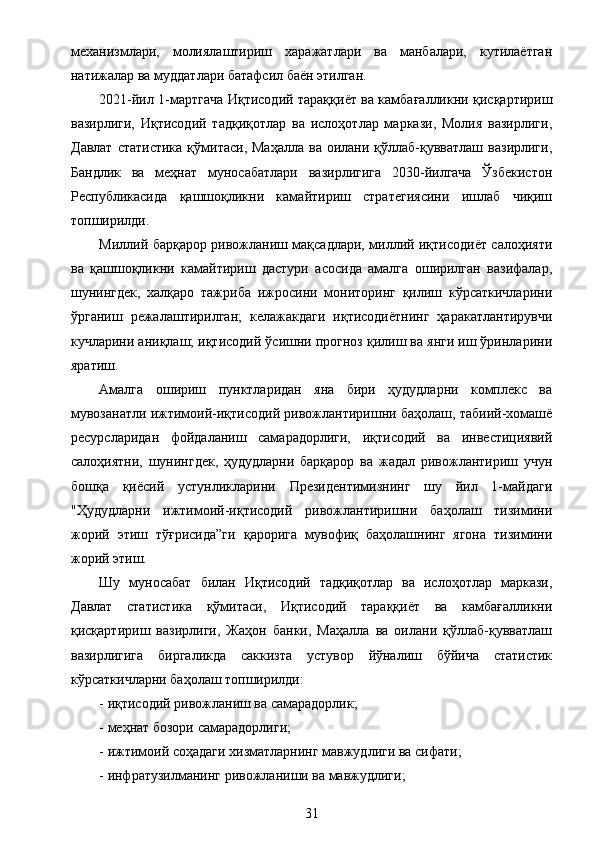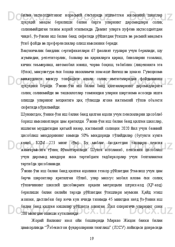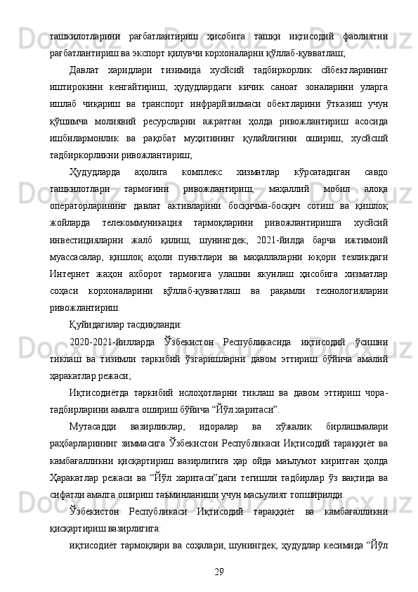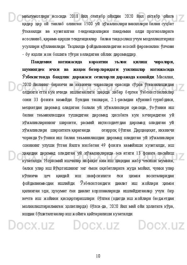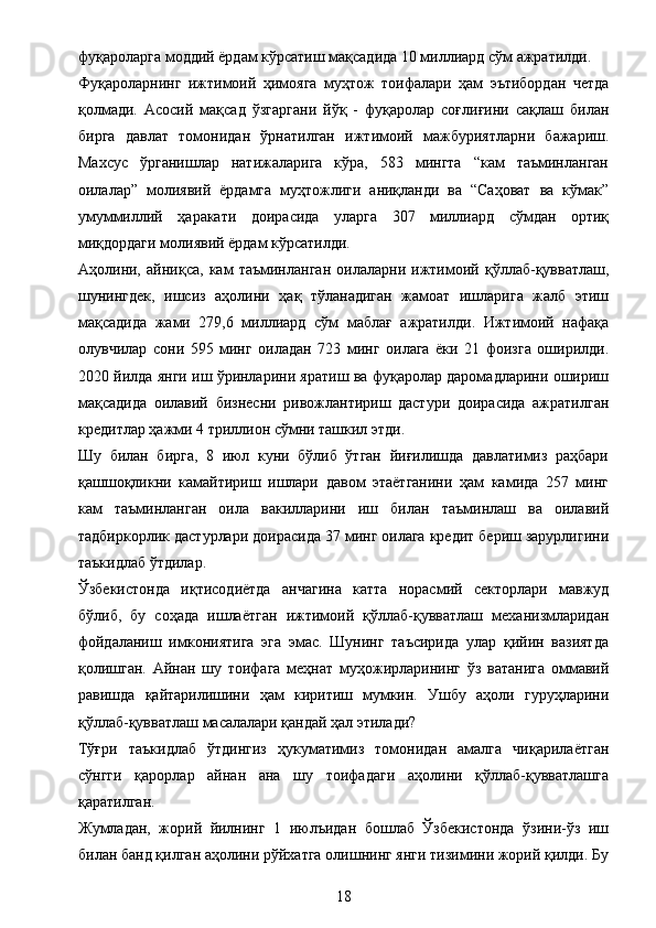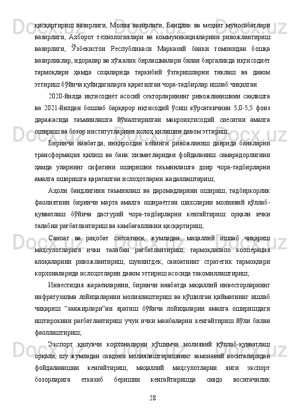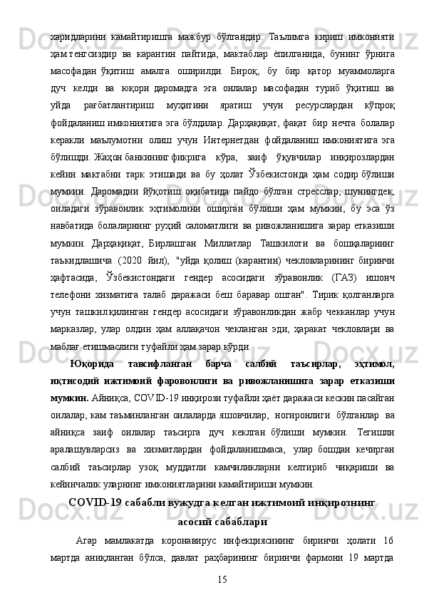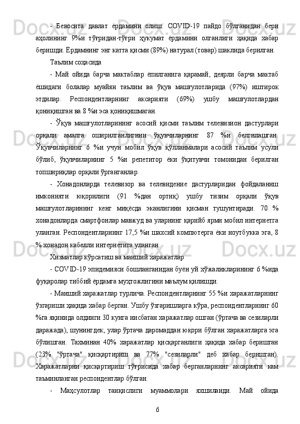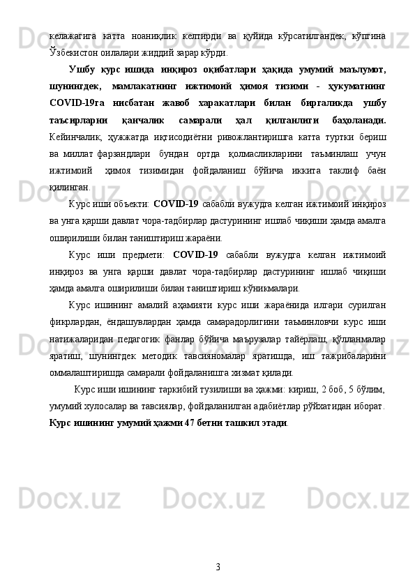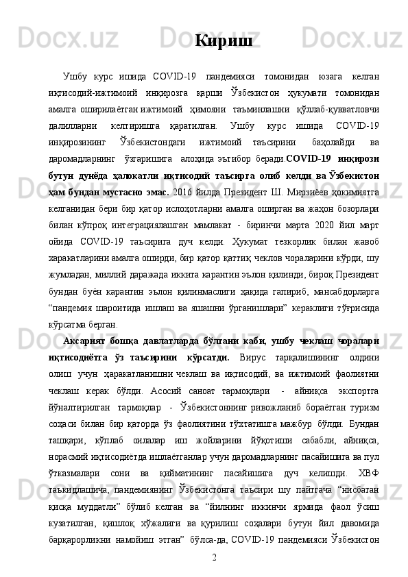 COVID-19 сабабли вужудга келган ижтимоий инқироз ва унга қарши давлат чора-тадбирлар дастурининг ишлаб чиқилиши ҳамда амалга оширилиши