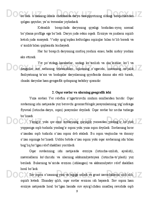 2. Oqar suvlar va ularning geografik ishi …………………..…. …..………..9