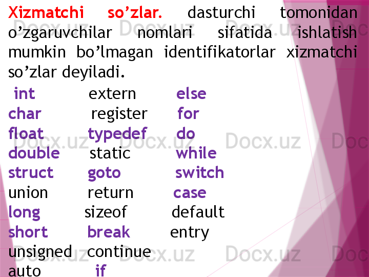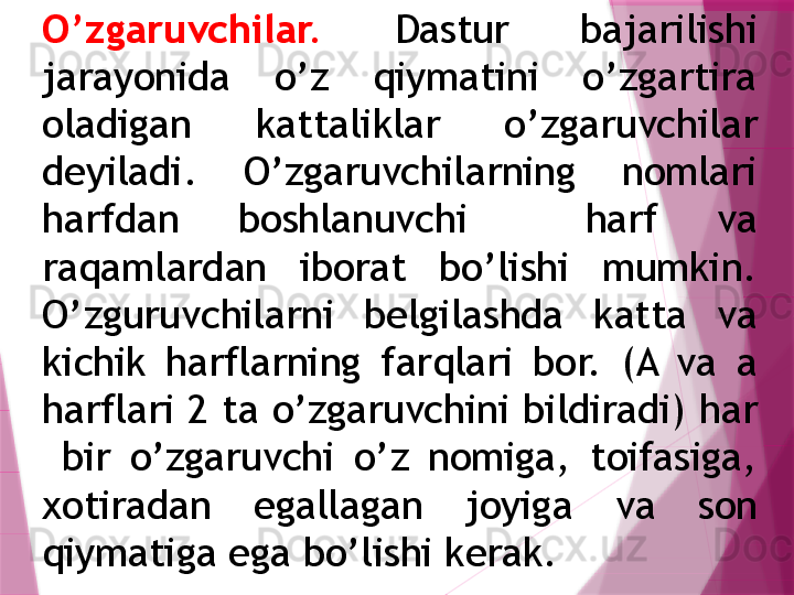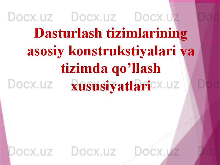 Dasturlash tizimlarining asosiy konstrukstiyalari va tizimda qo’llash xususiyatlari