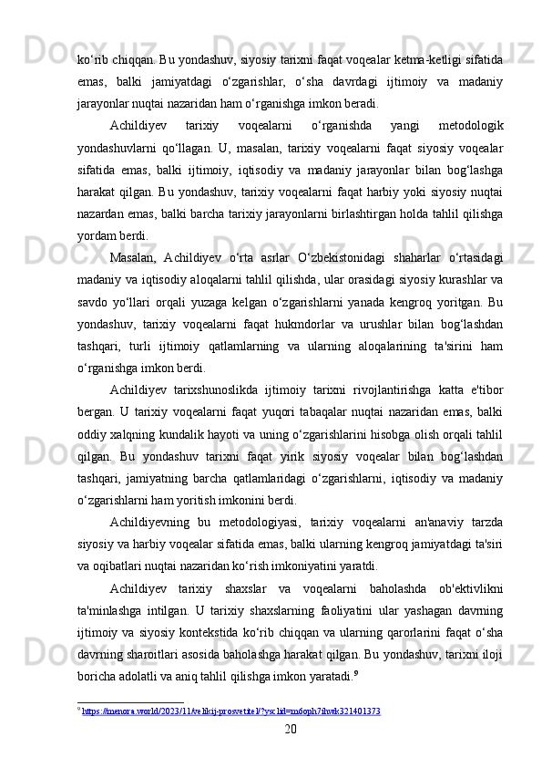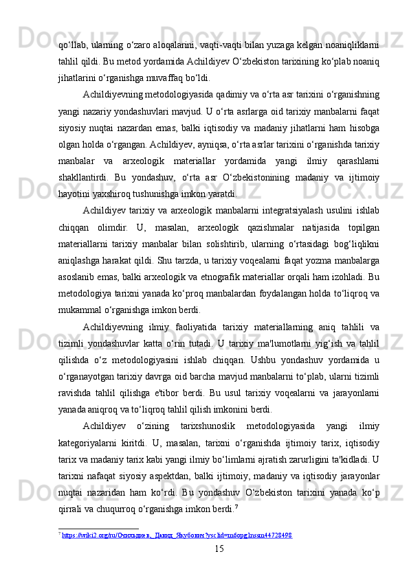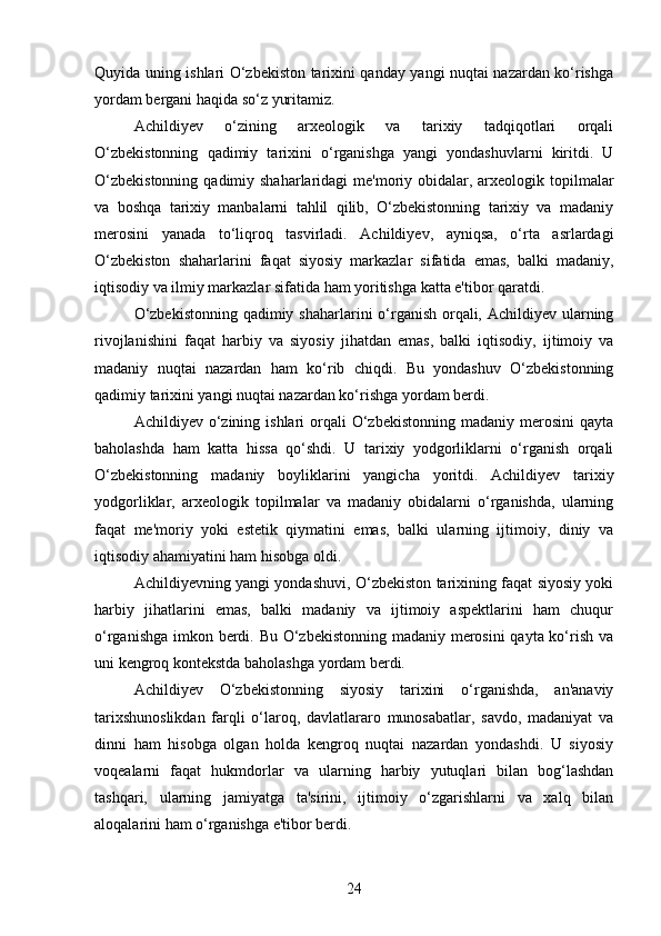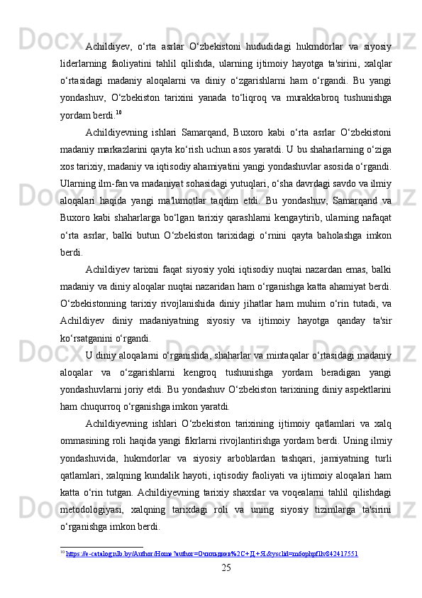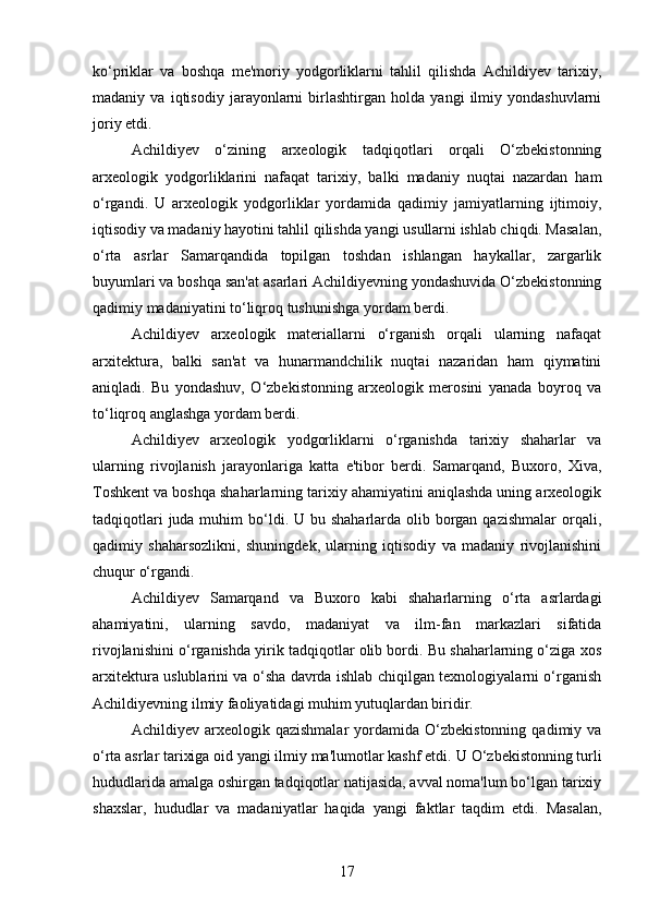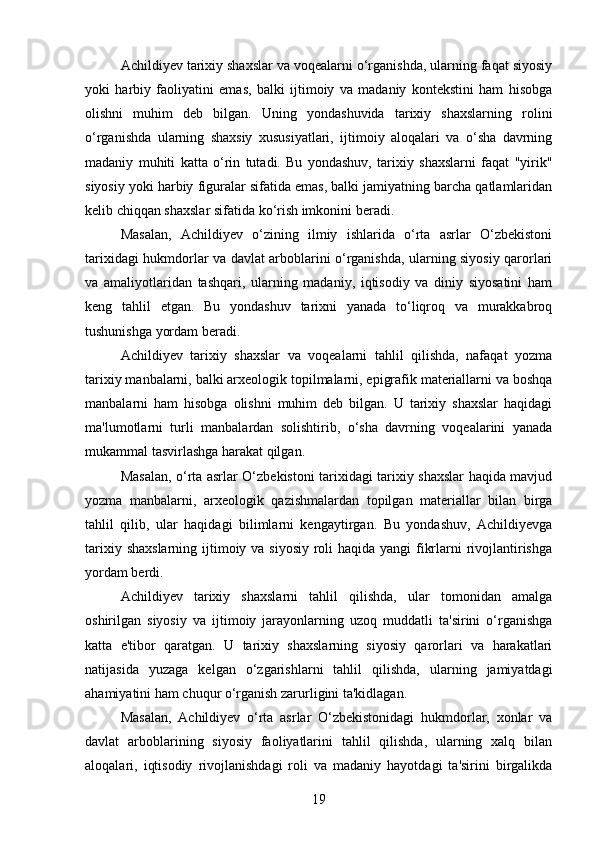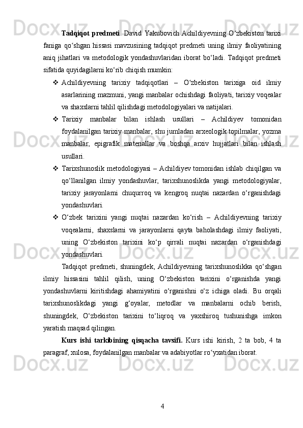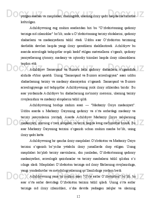 DAVID YAKUBOVICH ACHILDIYEVNING OʻZBEKISTON TARIXI FANIGA QOʻSHGAN HISSASI
