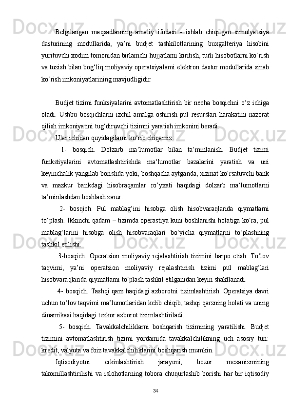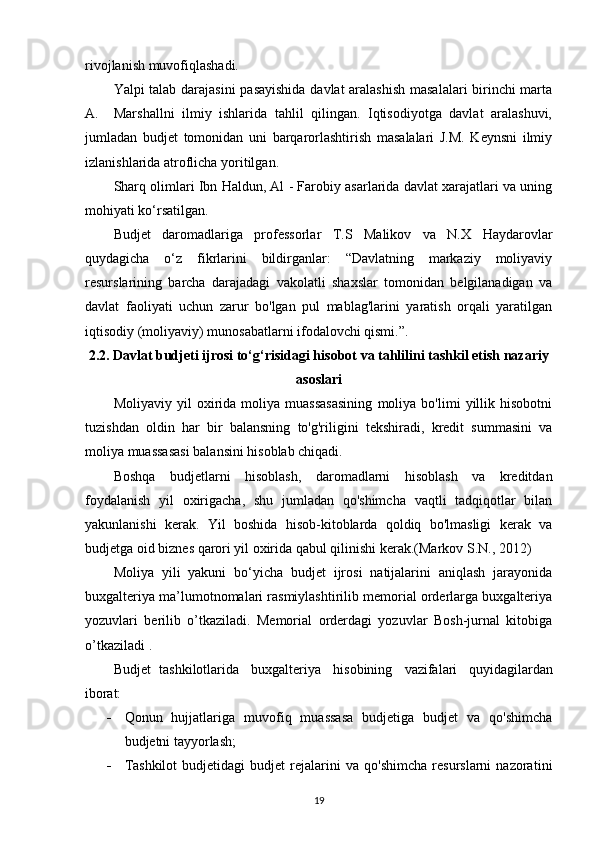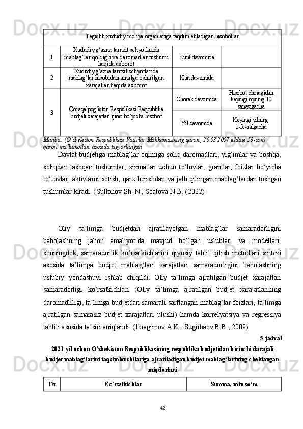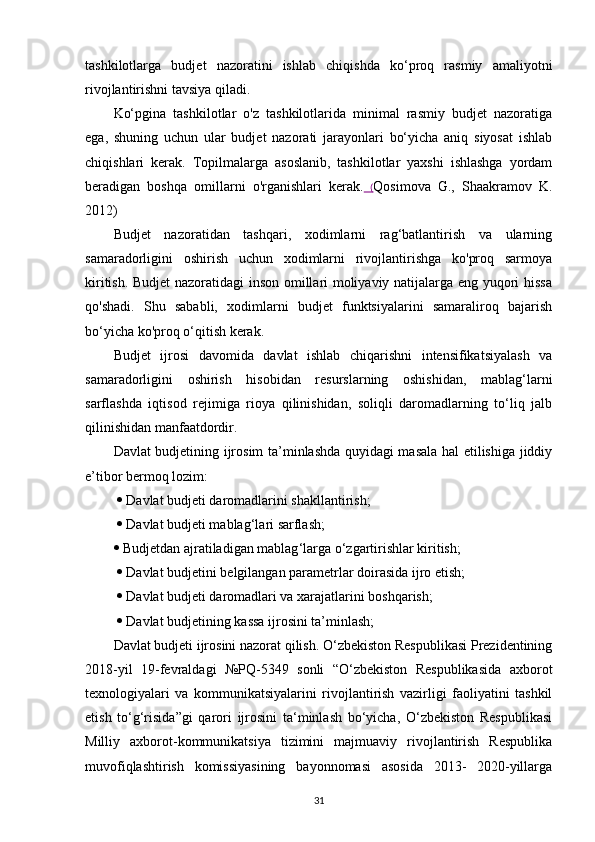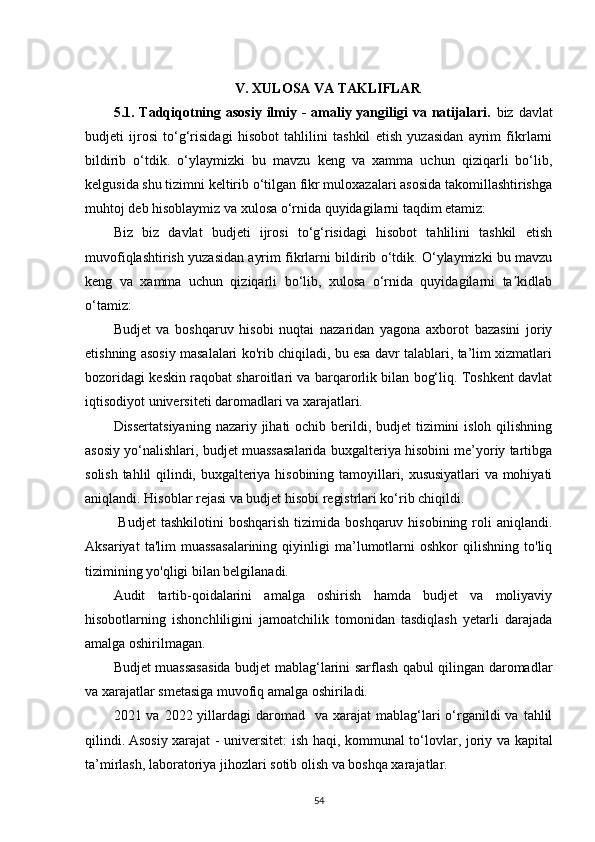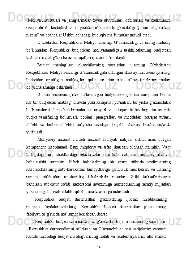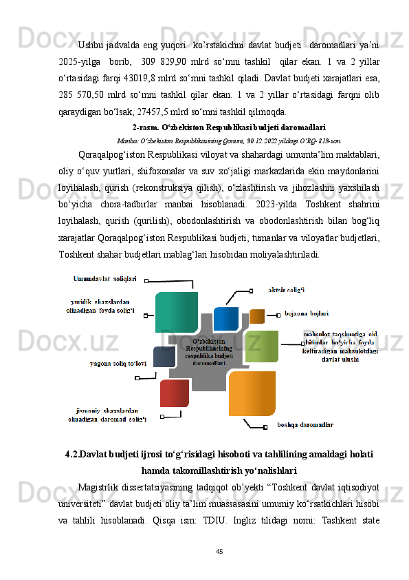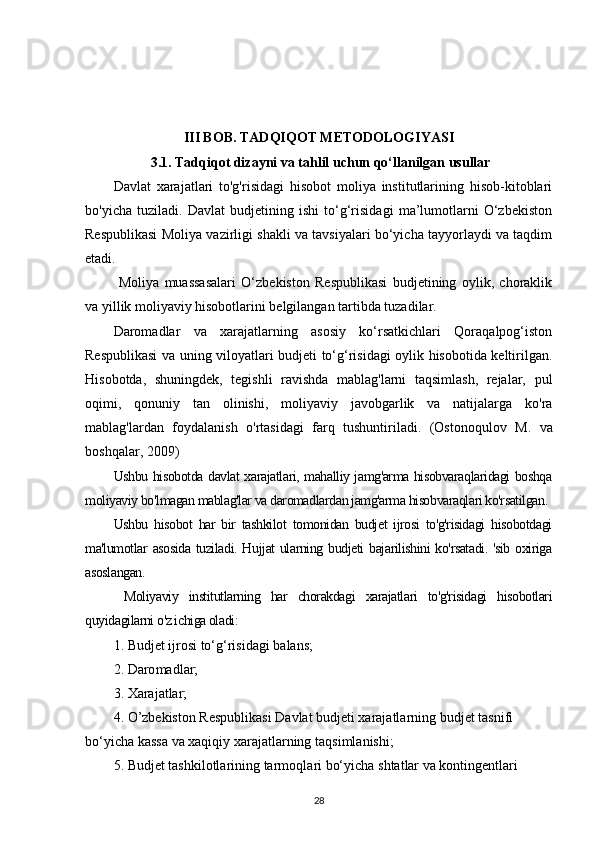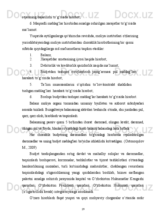 DAVLAT BUDJETI IJROSI TO‘G‘RISIDAGI HISOBOT TAHLILINI TASHKIL ETISH dissertatsiya