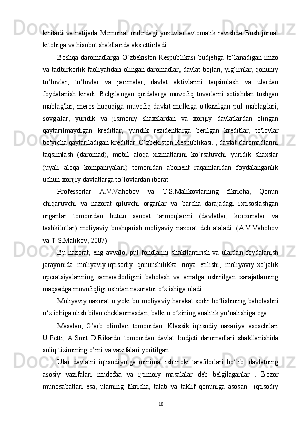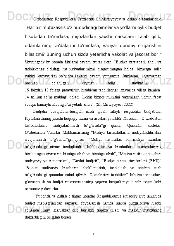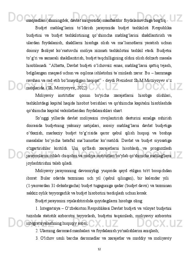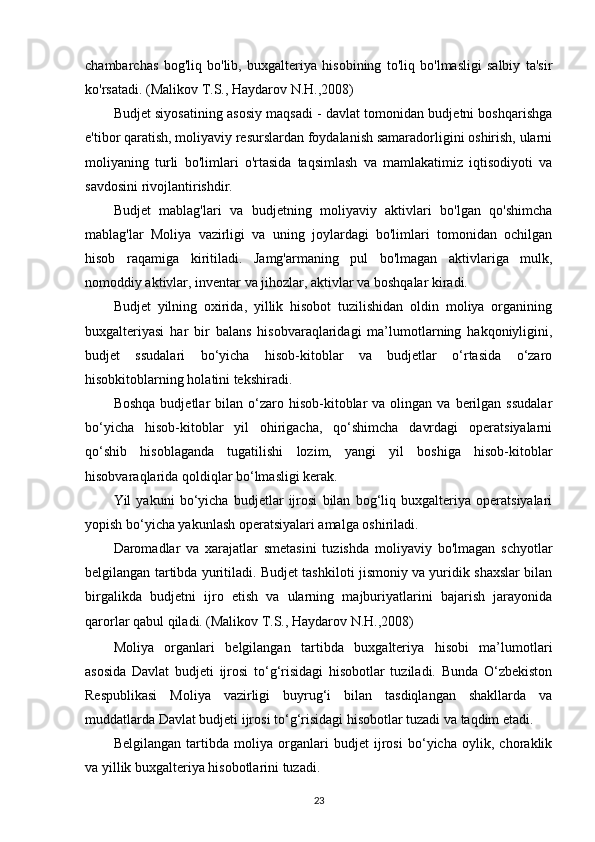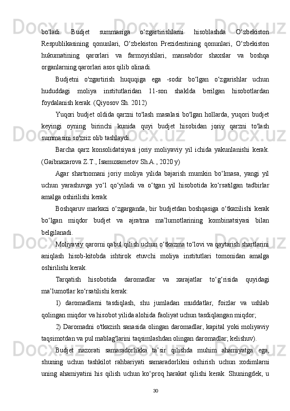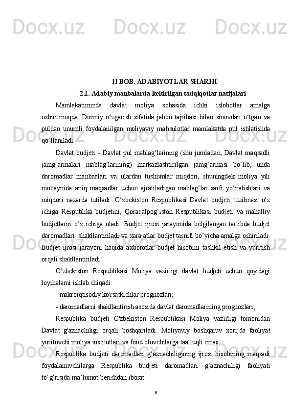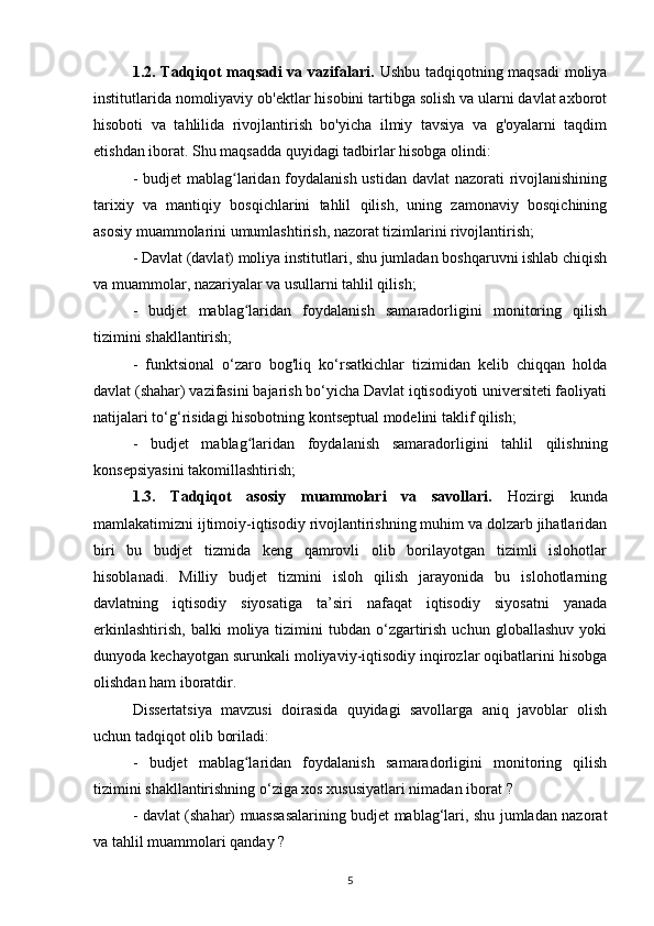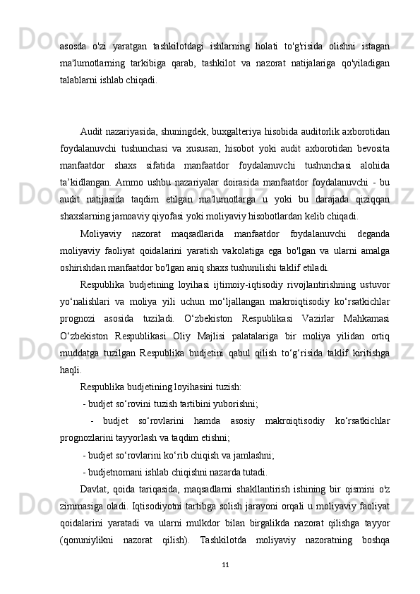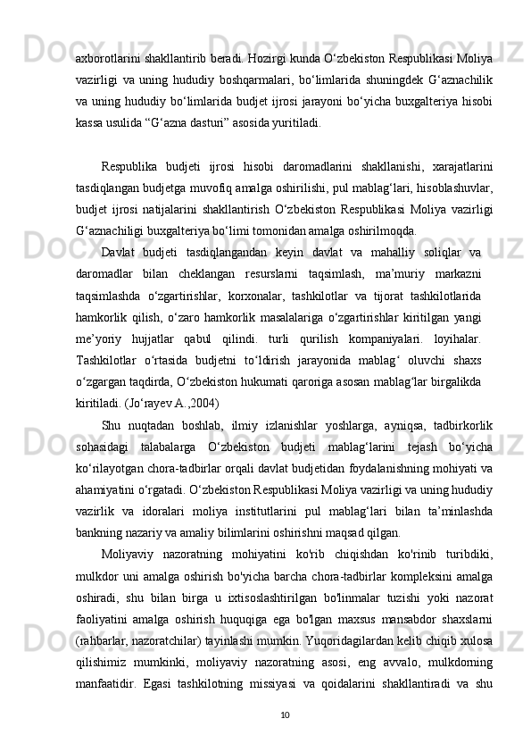DAVLAT BUDJETI IJROSI TO‘G‘RISIDAGI HISOBOT TAHLILINI TASHKIL ETISH dissertatsiya