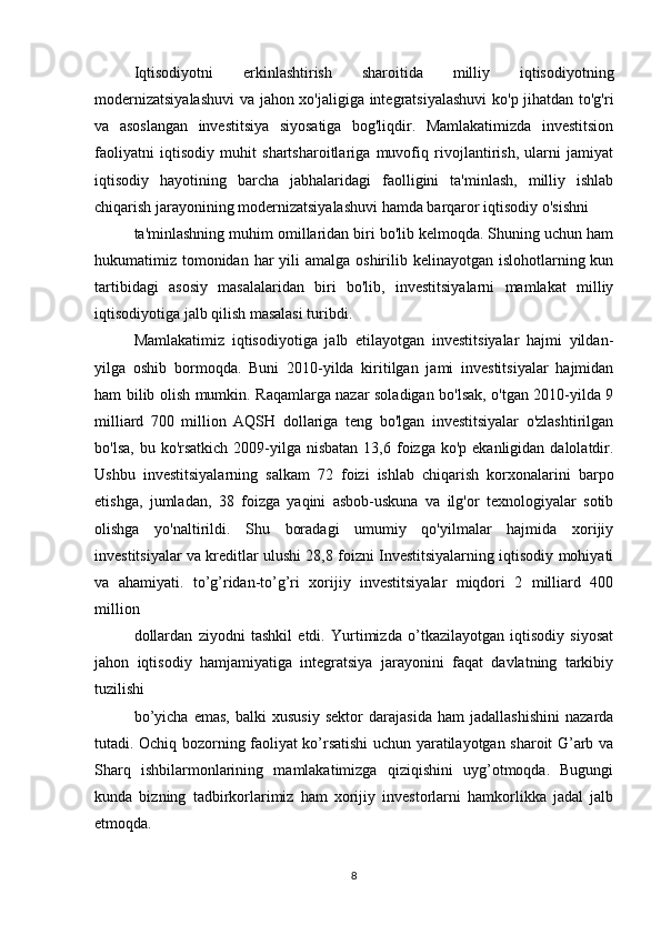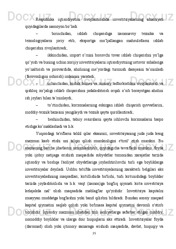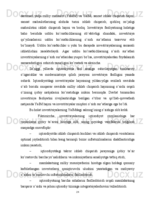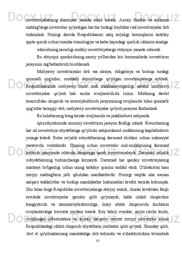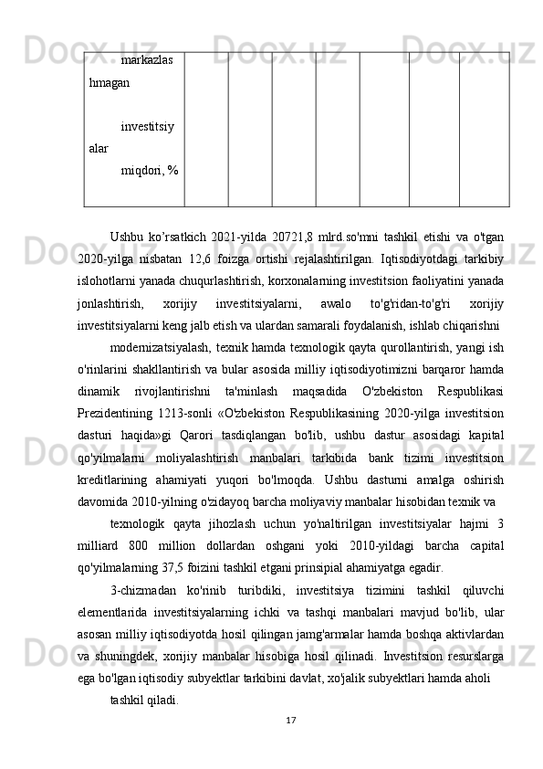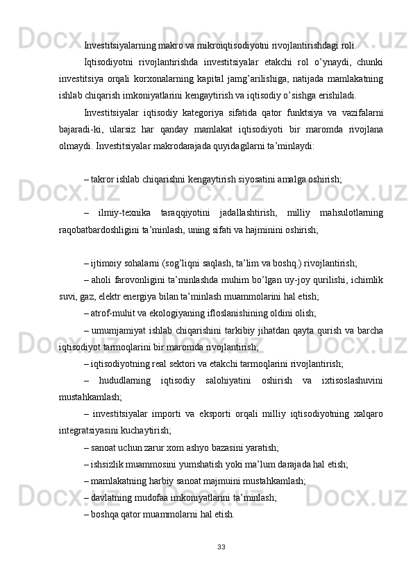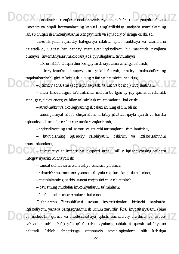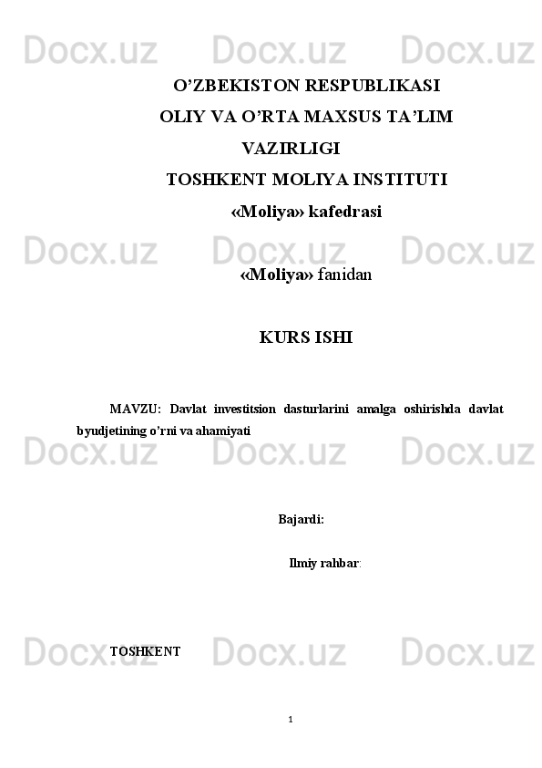 Davlat investitsion dasturlarini amalga oshirishda davlat byudjetining o'rni va ahamiyati