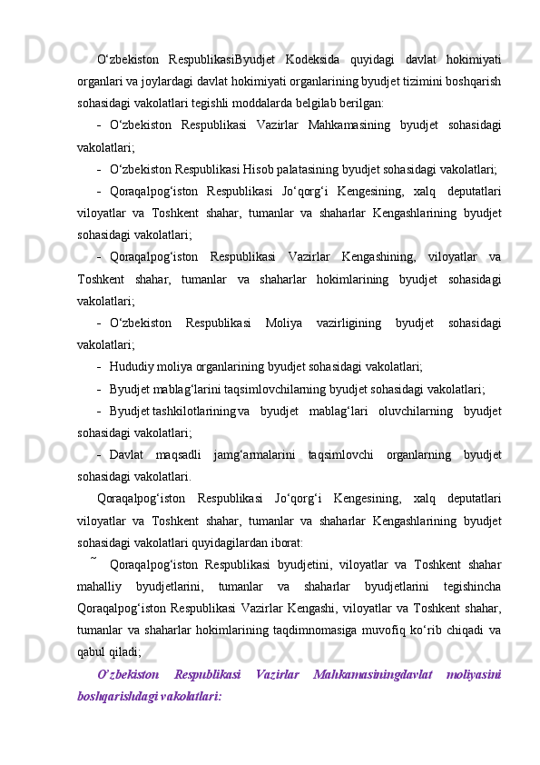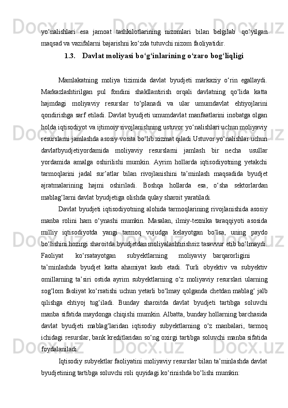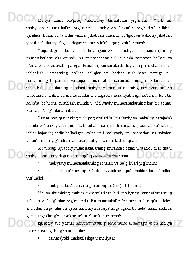 Davlat moliya tizimi, uning tarkibi va tuzilishi