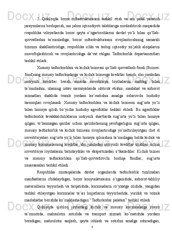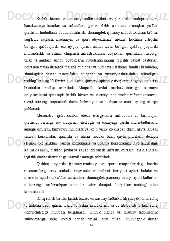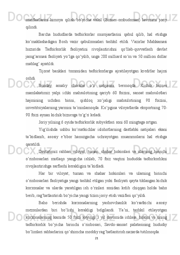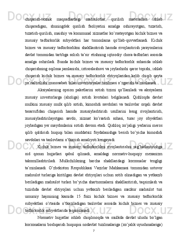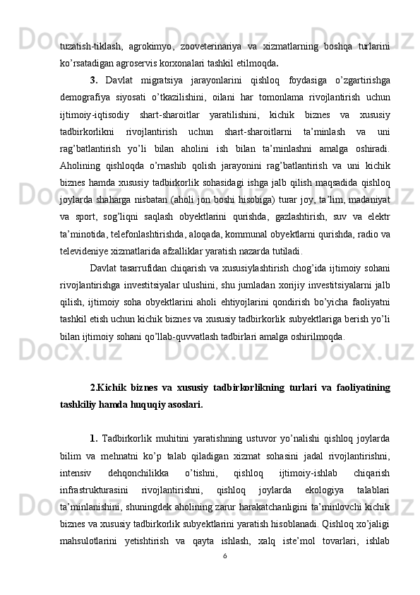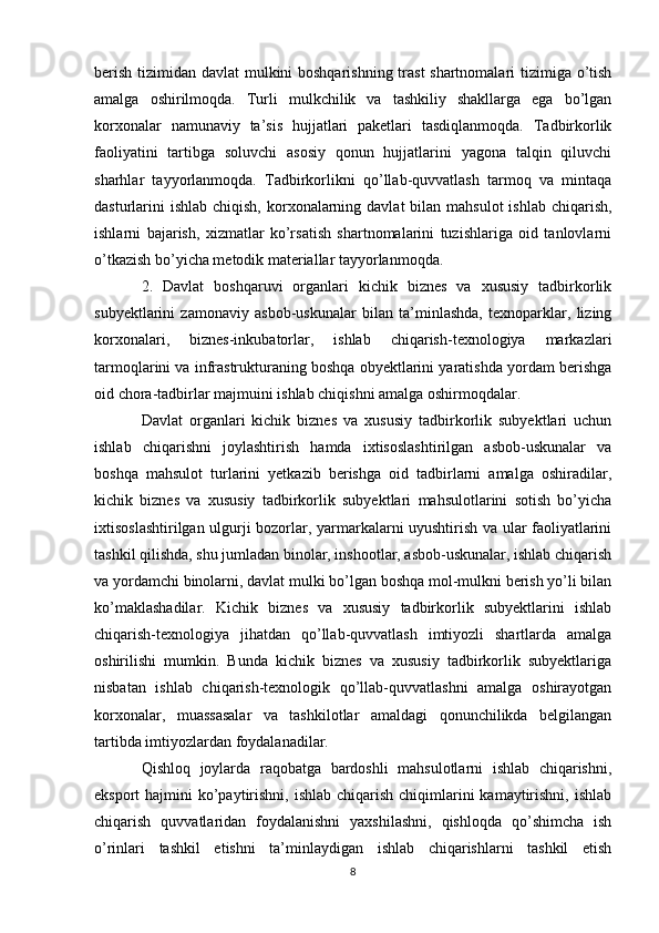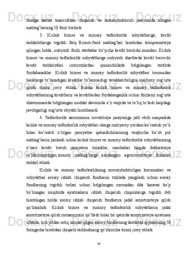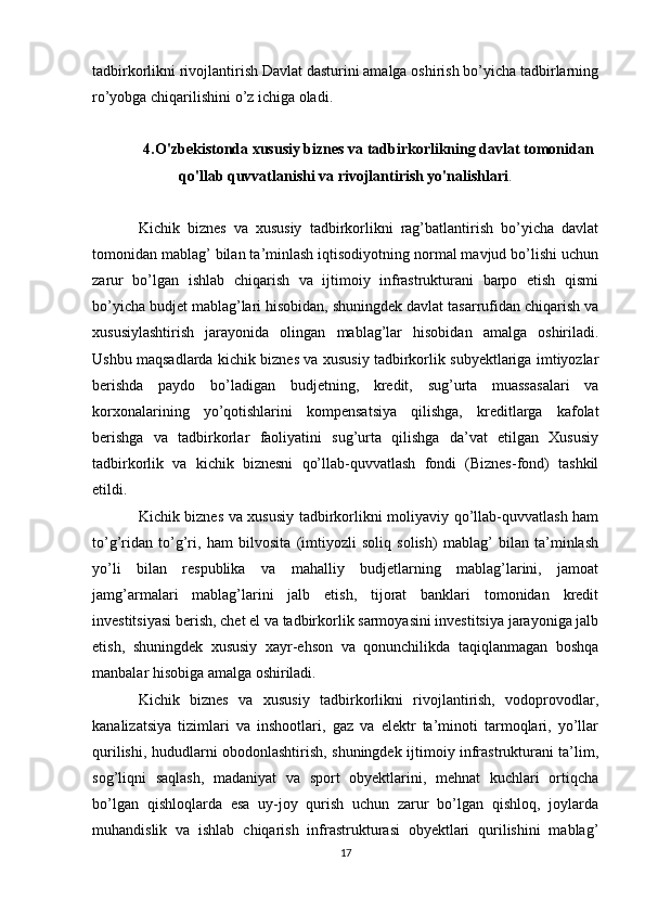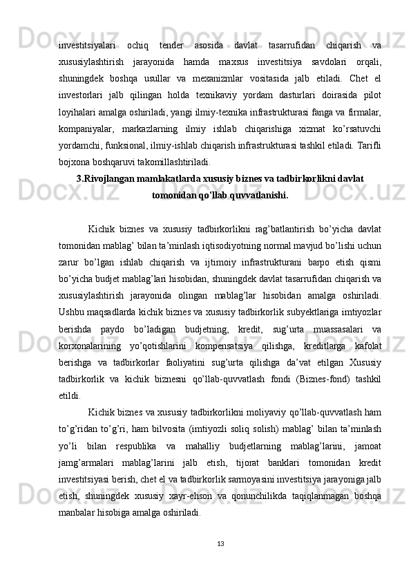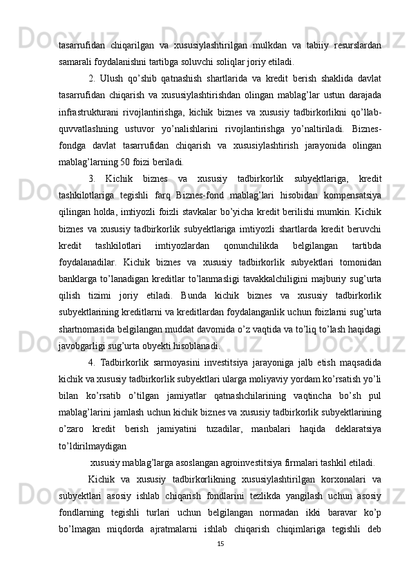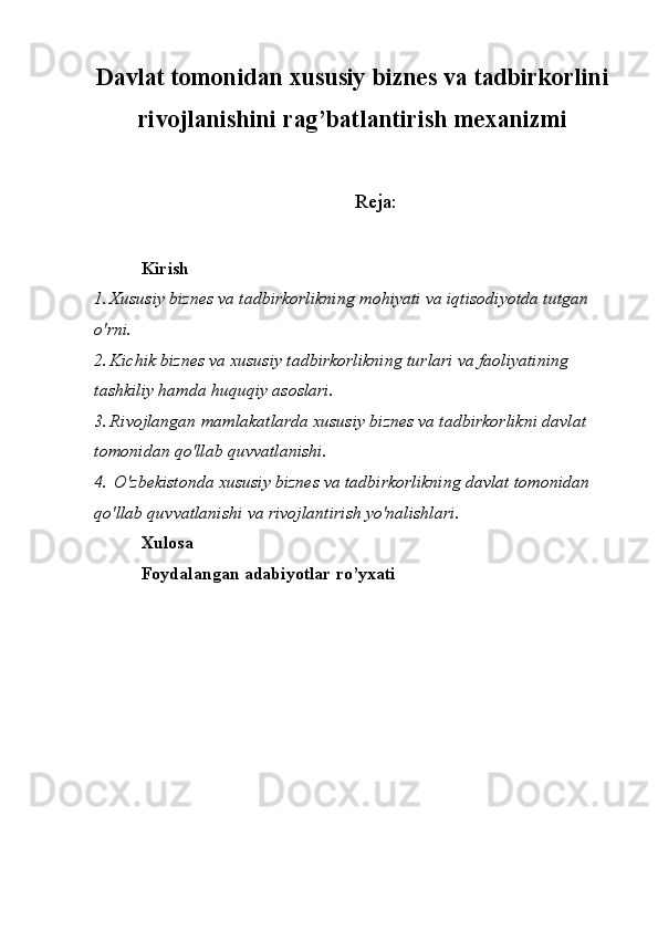 Davlat tomonidan xususiy biznes va tadbirkorlikni rivojlanishini rag’batlantirish mexanizmi