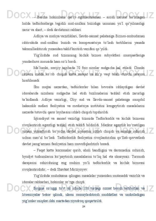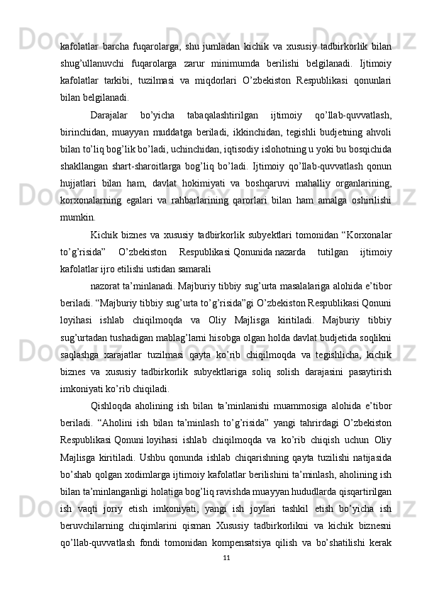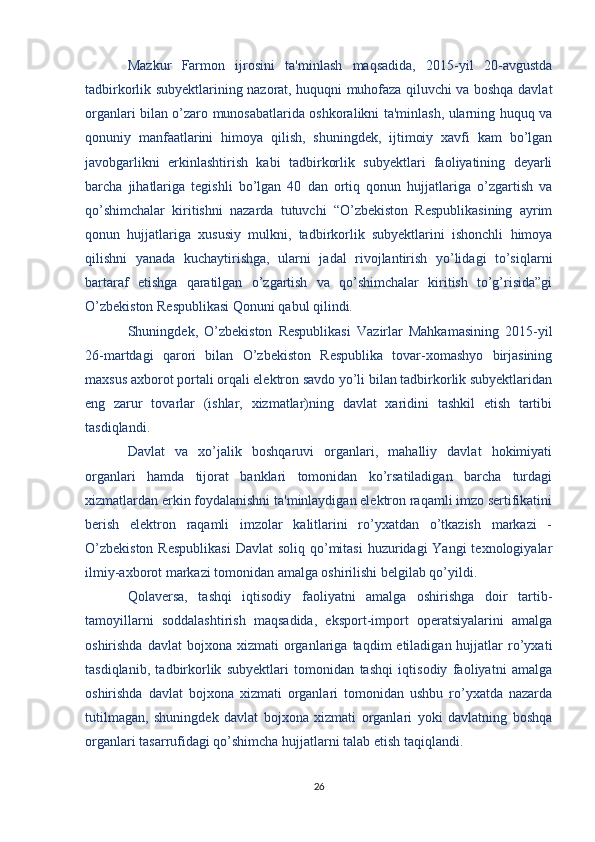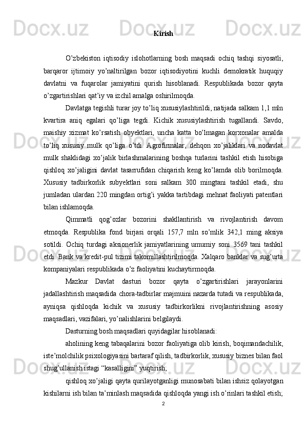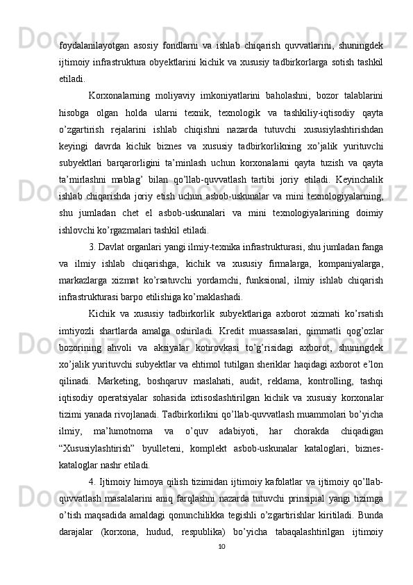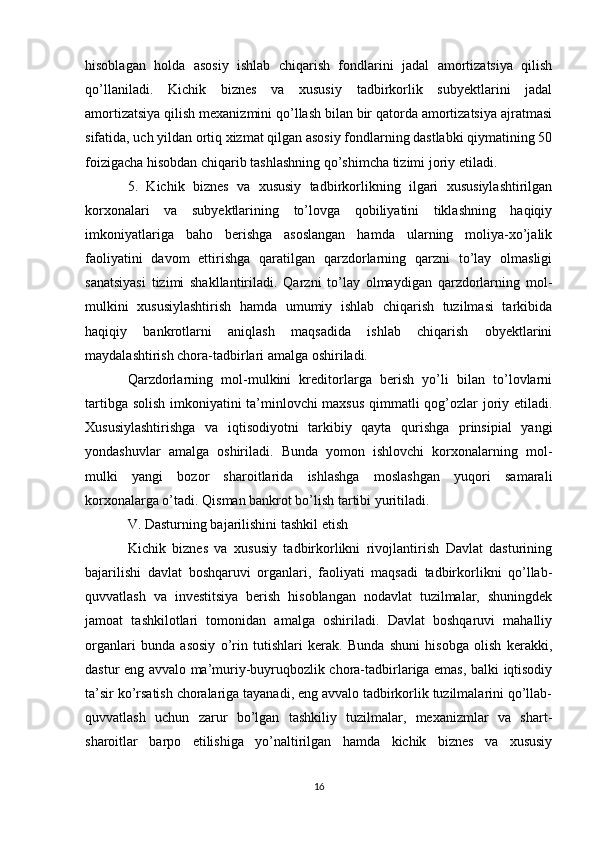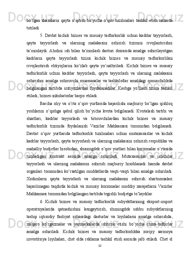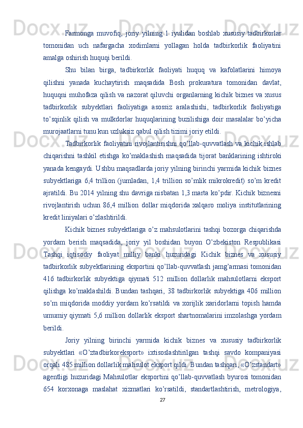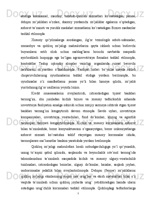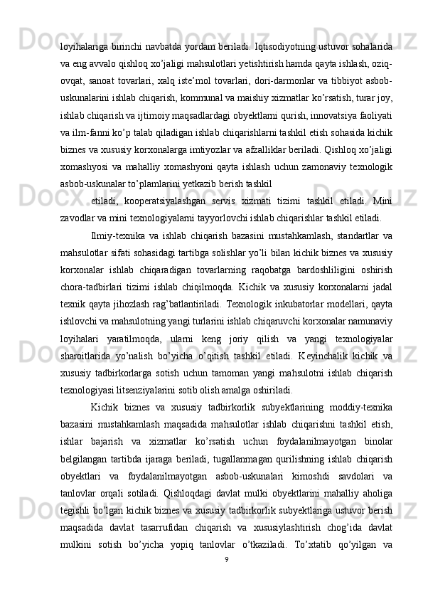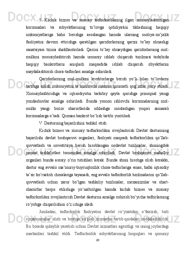 Davlat tomonidan xususiy biznes va tadbirkorlikni rivojlanishini rag’batlantirish mexanizmi