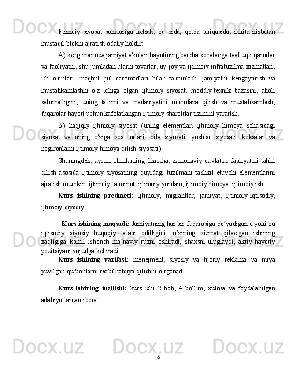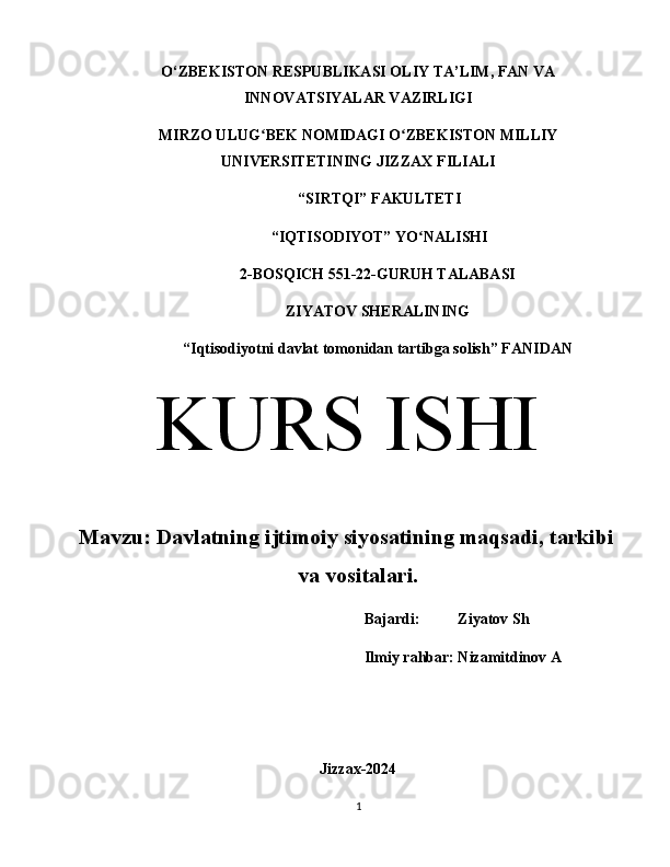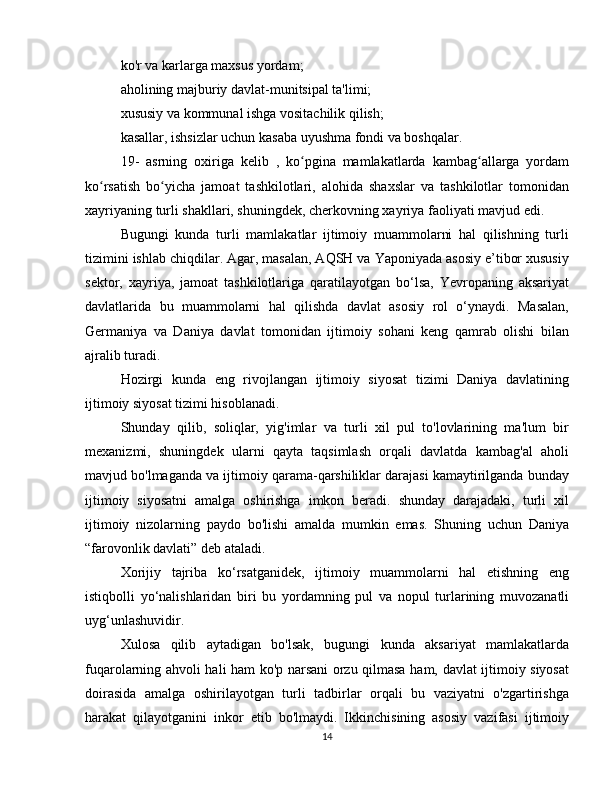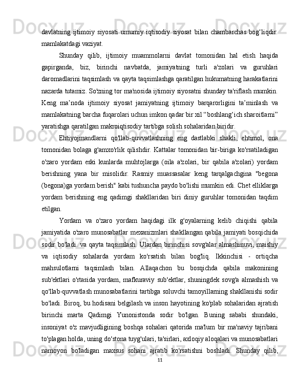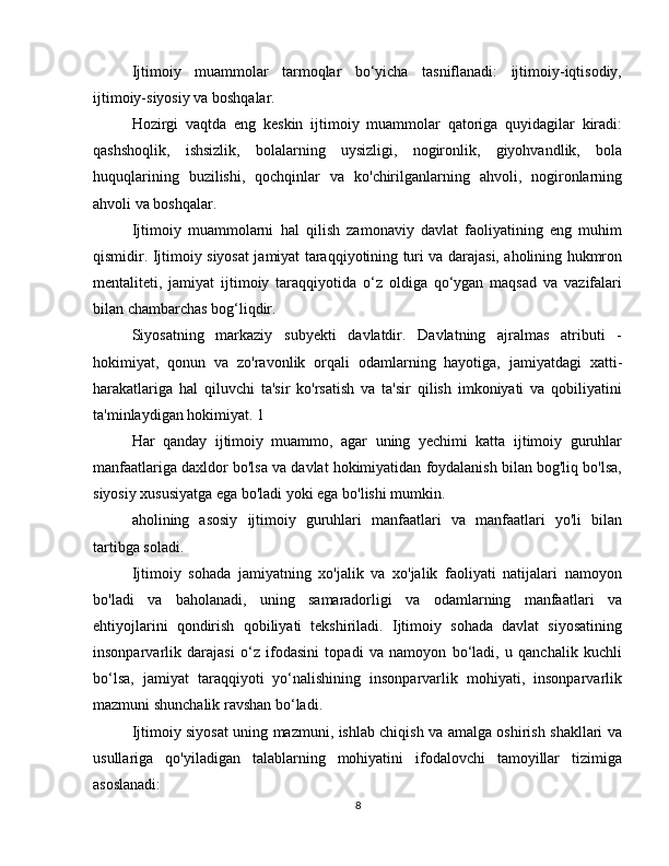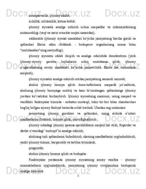 Davlatning ijtimoiy siyosatining maqsadi tarkibi va vositalari