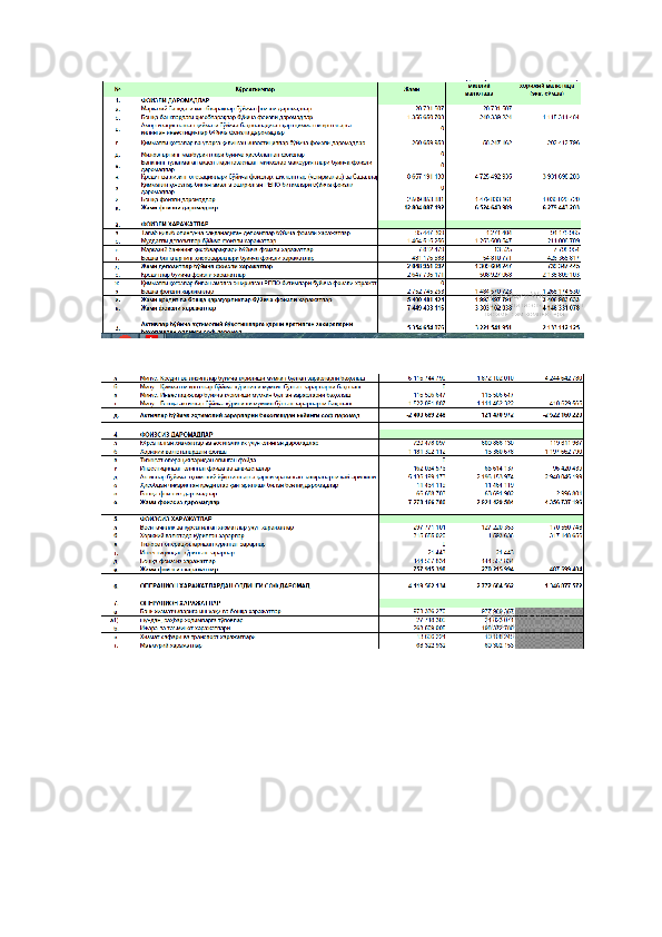 | 2.3 | Milliy Banki Malikrabot filialida debitorlik va kreditorlik qarzlari ko’tsatkichlarga tasir qiluvchi omillar tahlili | |