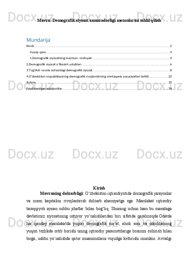 1.Demografik siyosatning mazmun- mohiyati. 4
