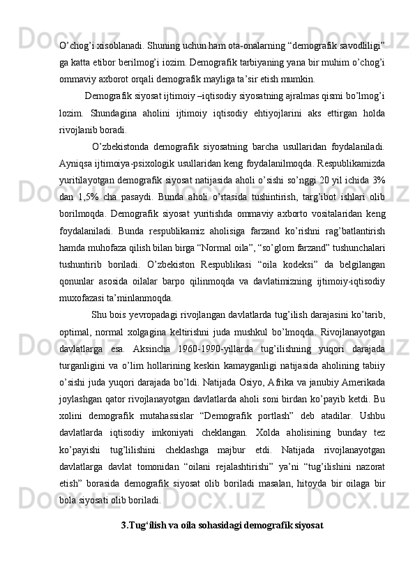3.Tug‘ilish va oila sohasidagi demografik siyosat 8