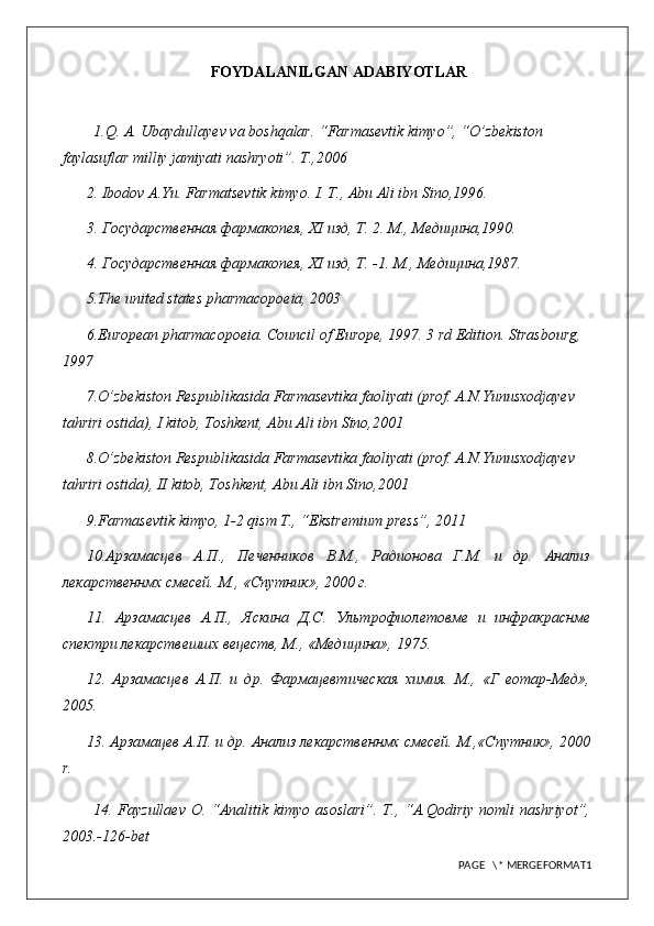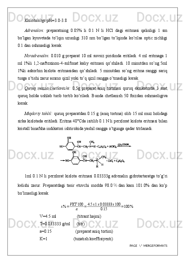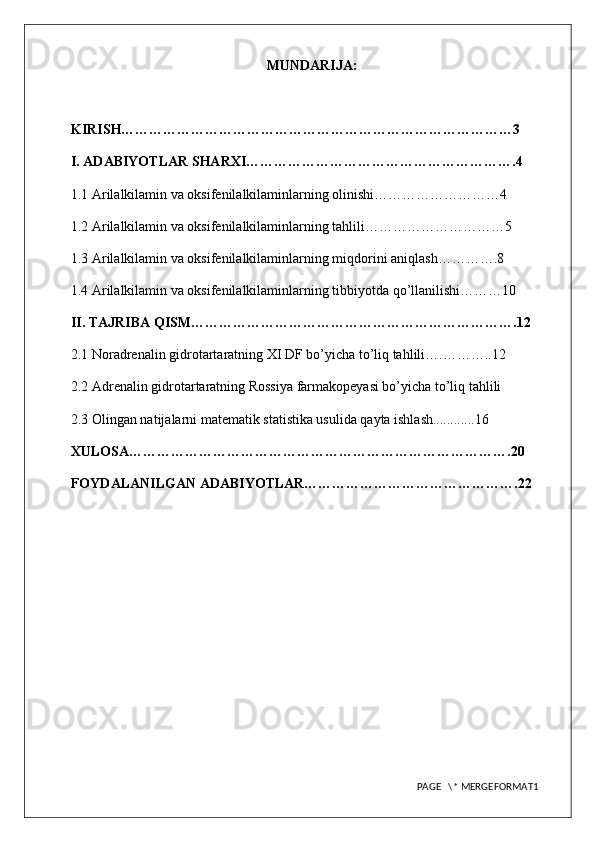 Dietilaminofenilalkilaminlar guruh preparatlar tahlili