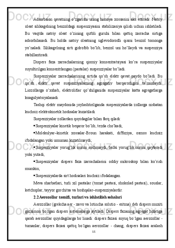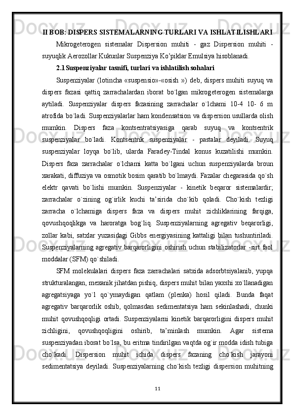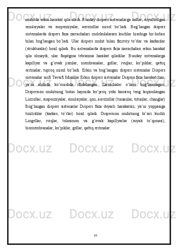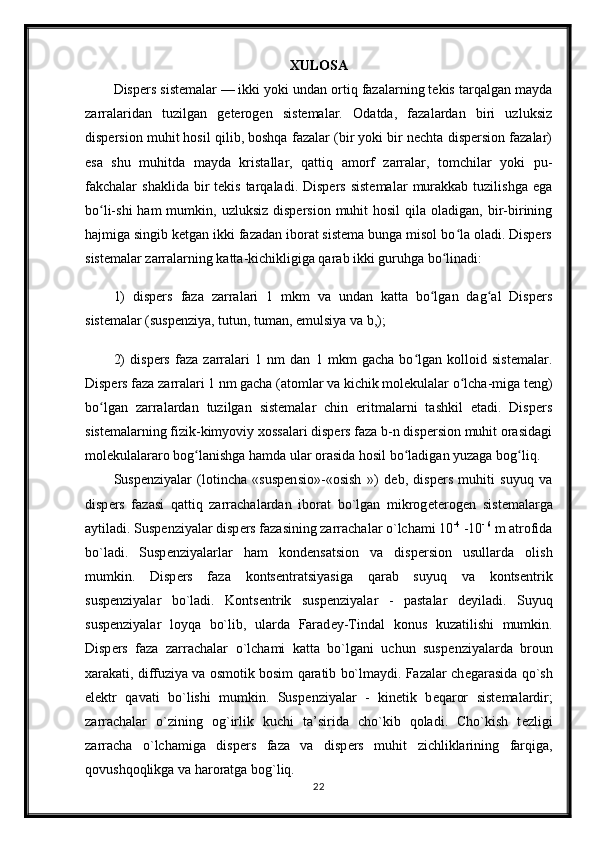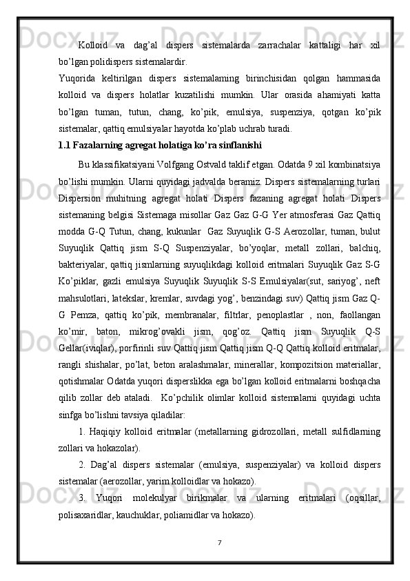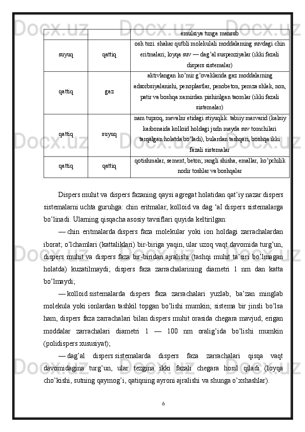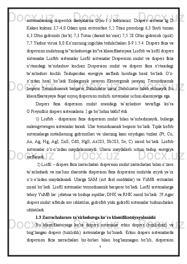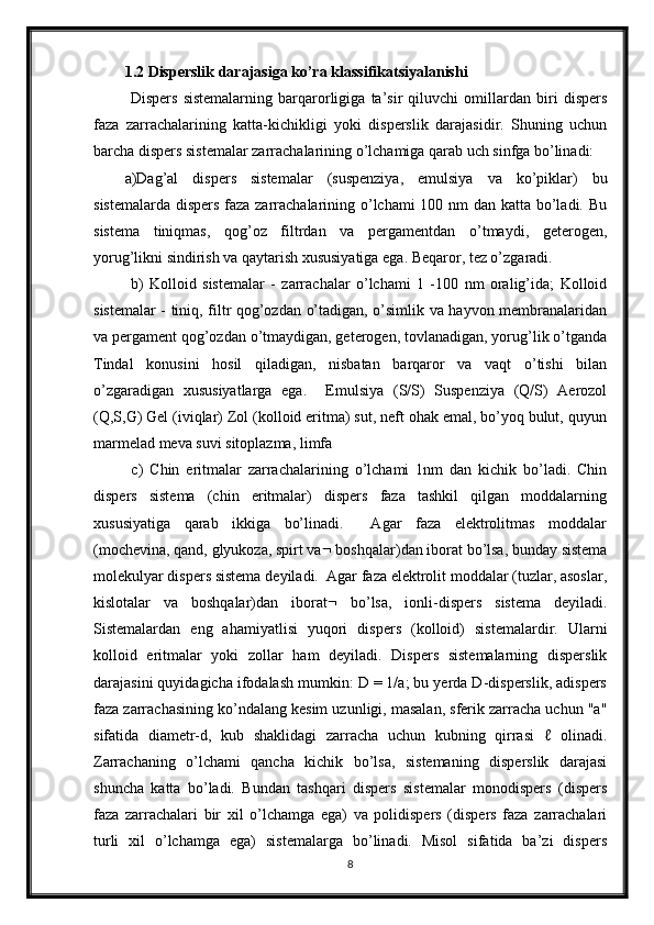 Dispers sistemalarning turli tasniflarini yaratishning asosiy tamoyillari