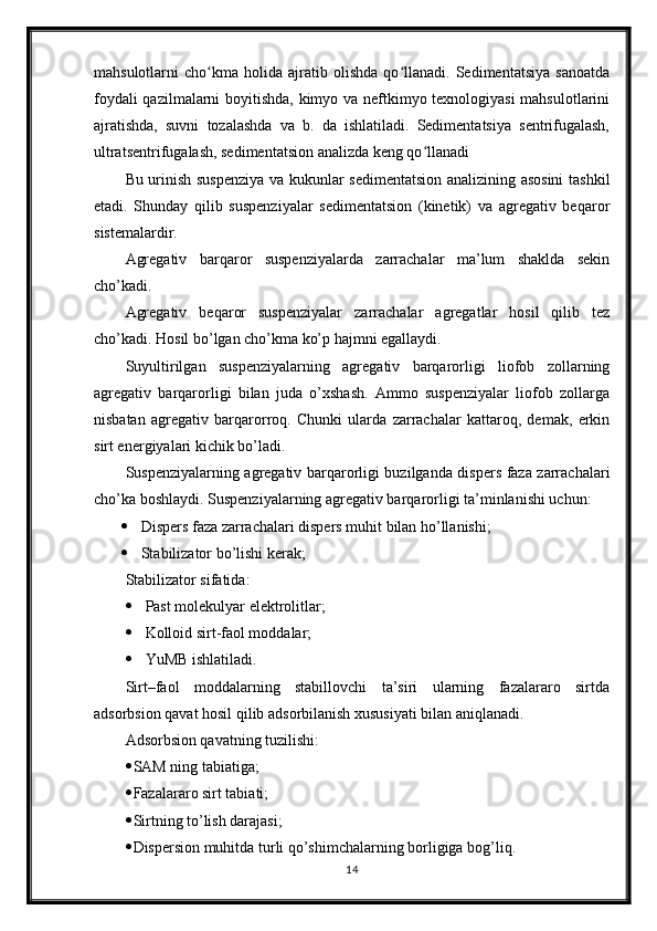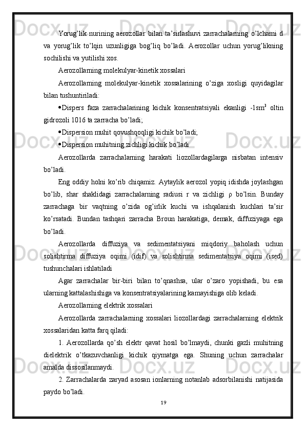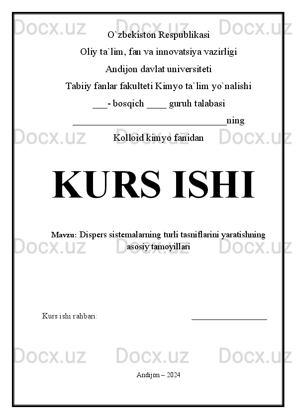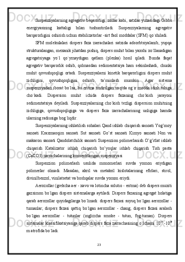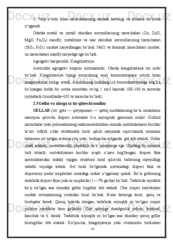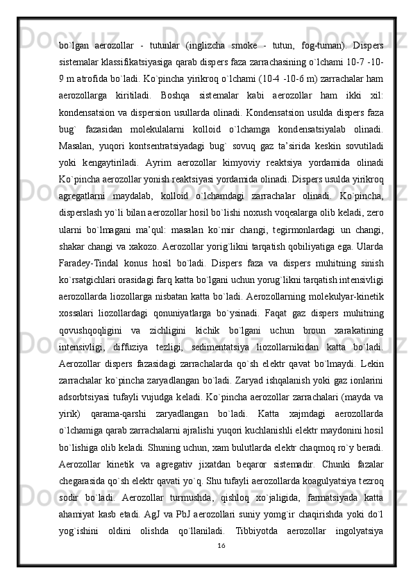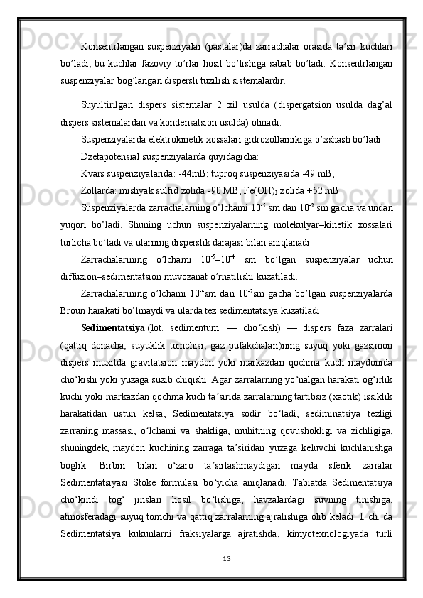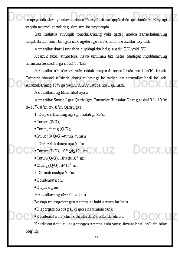 Dispers sistemalarning turli tasniflarini yaratishning asosiy tamoyillari
