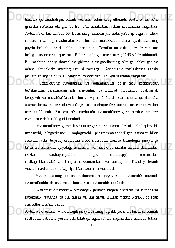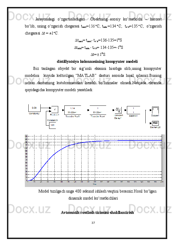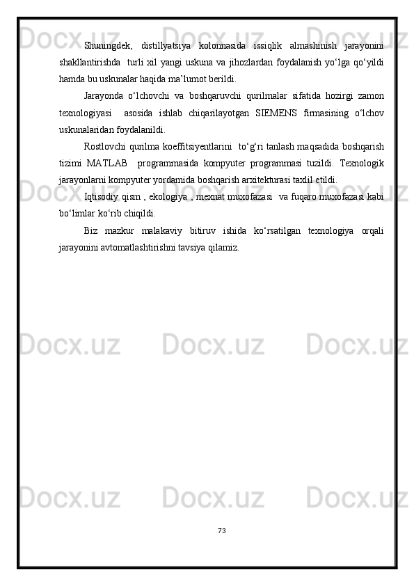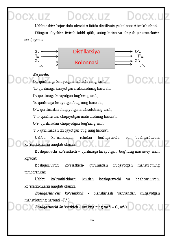 Distilyatsiya kolonnasida issiqlik almashinish jarayonini avtomatlashtirish