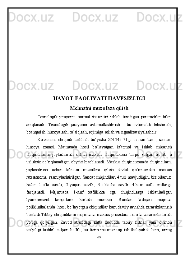 | 11 | Hayot faoliyati havfsizligi............................................................... | 57 |